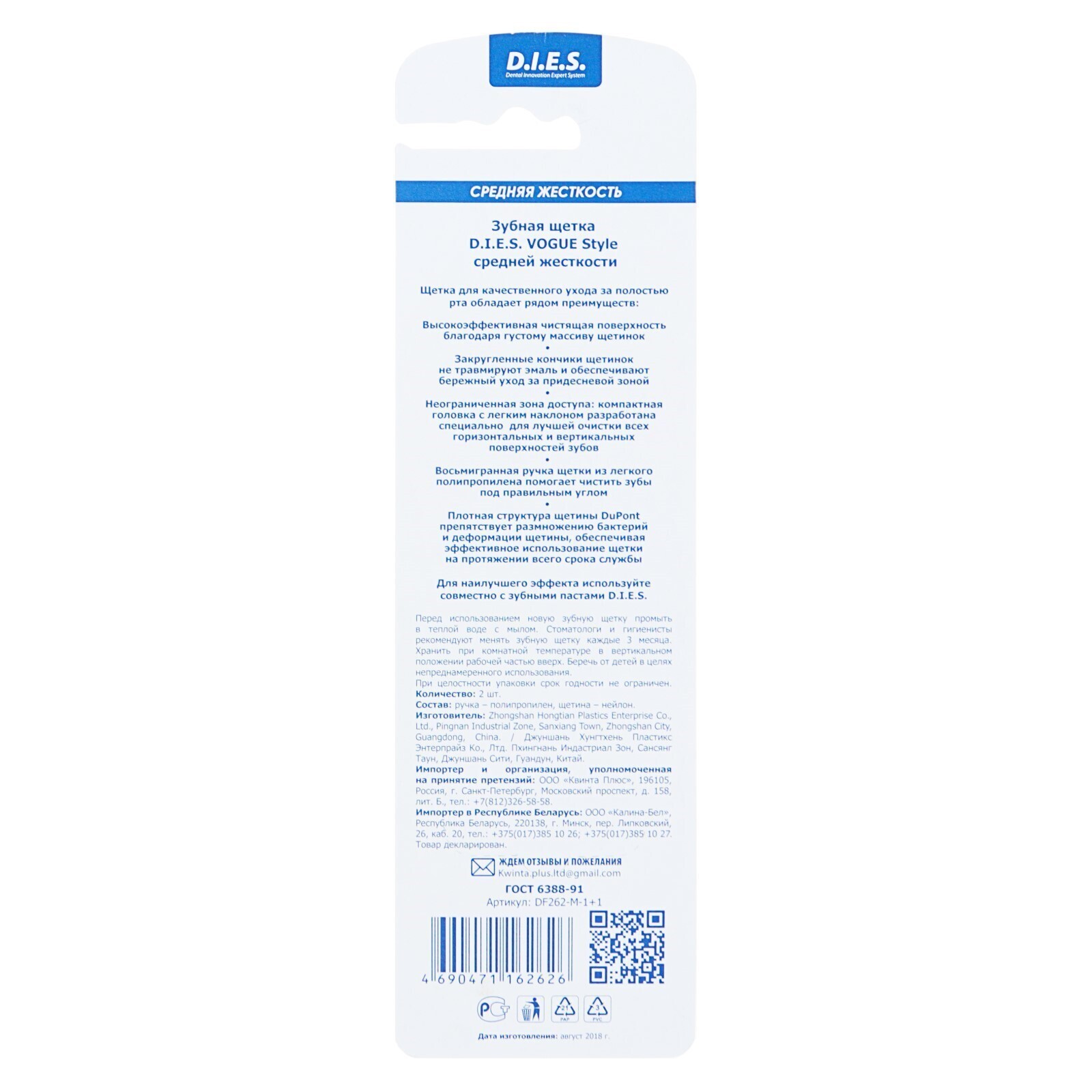 Зубная щётка D.I.E.S. Vogue Style средней жёсткости, 1+1 шт.