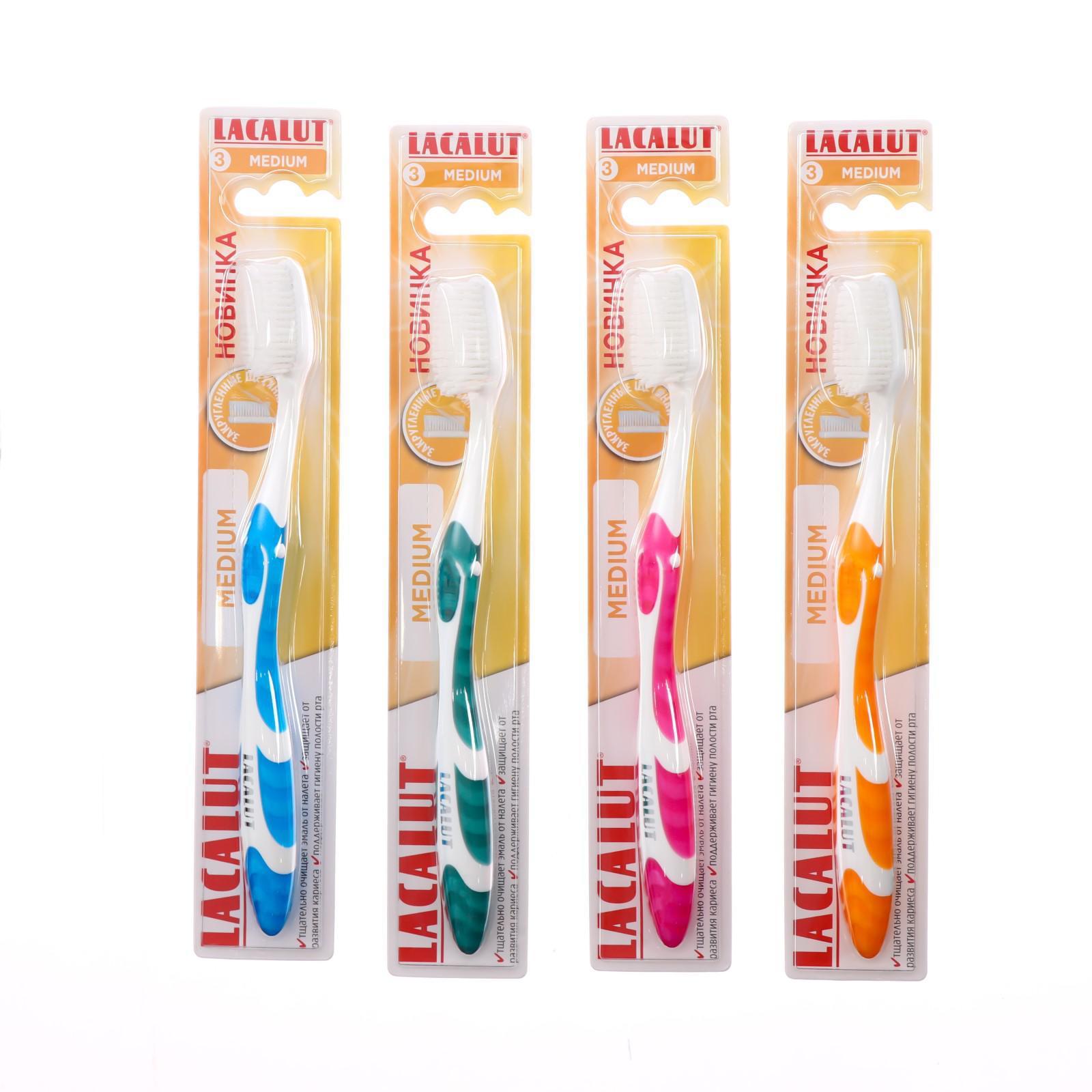 Зубная щетка Lacalut medium идеально подходит людям, стремящимся сохранить природную белизну зубов. Закругленные щетинки средней жесткости тщательно удаляют бактериальный зубной налет с поверхности эмали, препятствуя возникновению и развитию кариеса. Нескользящая эргономичная ручка с подушечкой для большого пальца позволяет регулировать нагрузку на эмаль и десны и обеспечивает комфорт во время чистки зубов.