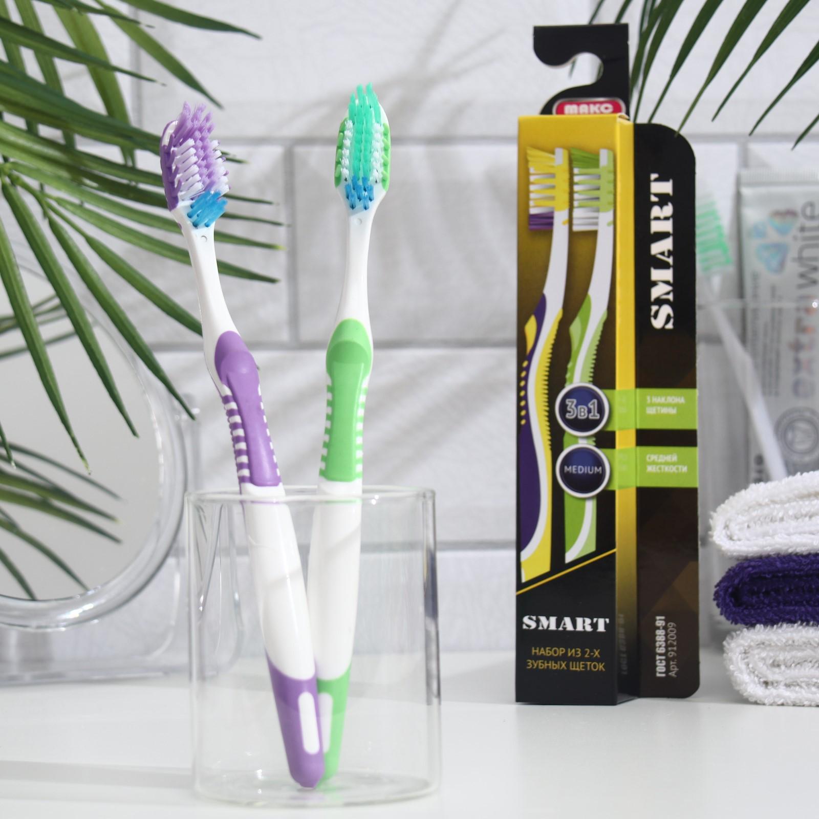 Зубная щётка «Сплит» средней жесткости, желтый, 2 шт.