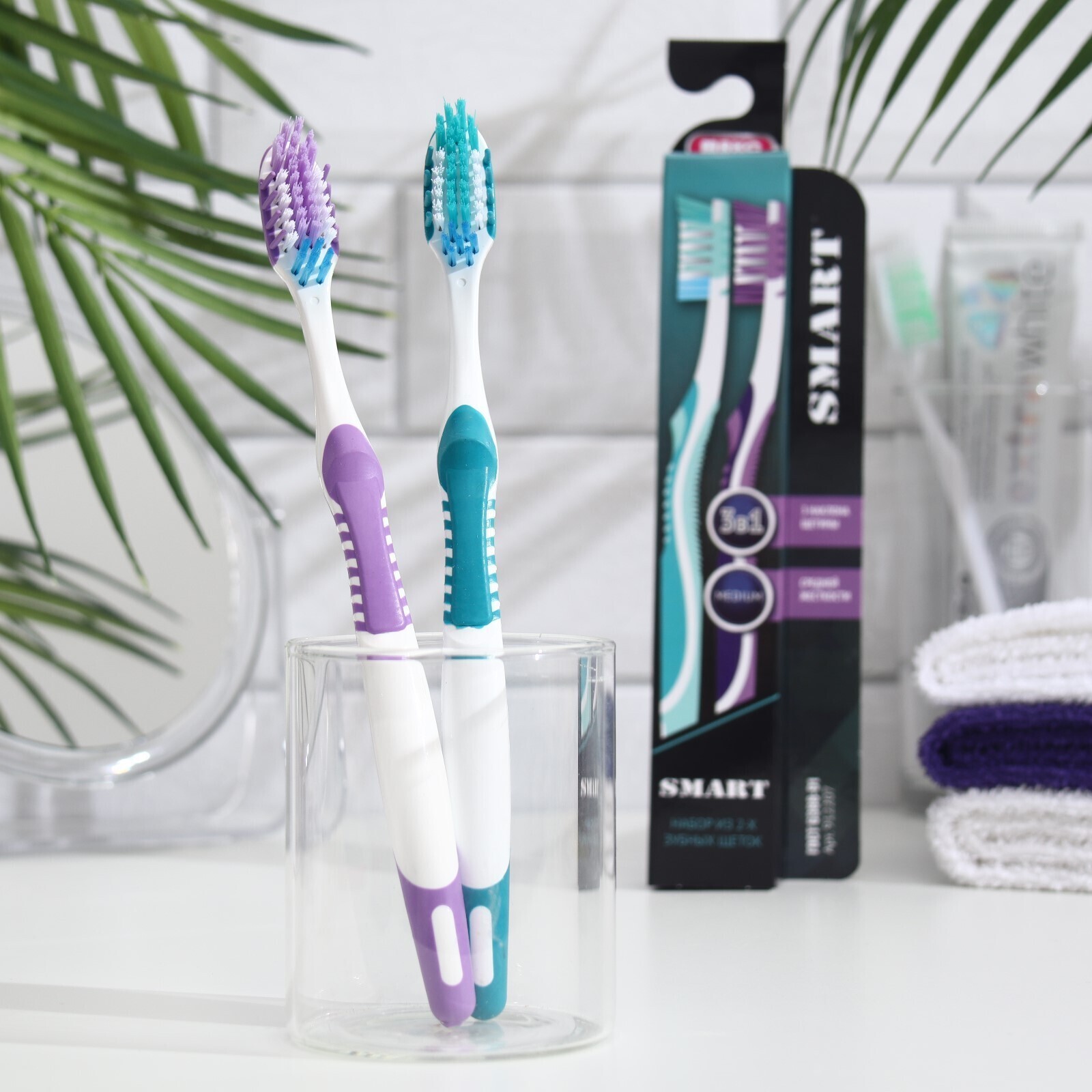 Зубная щётка «Смарт» средней жесткости, бирюзовый, 2 шт.