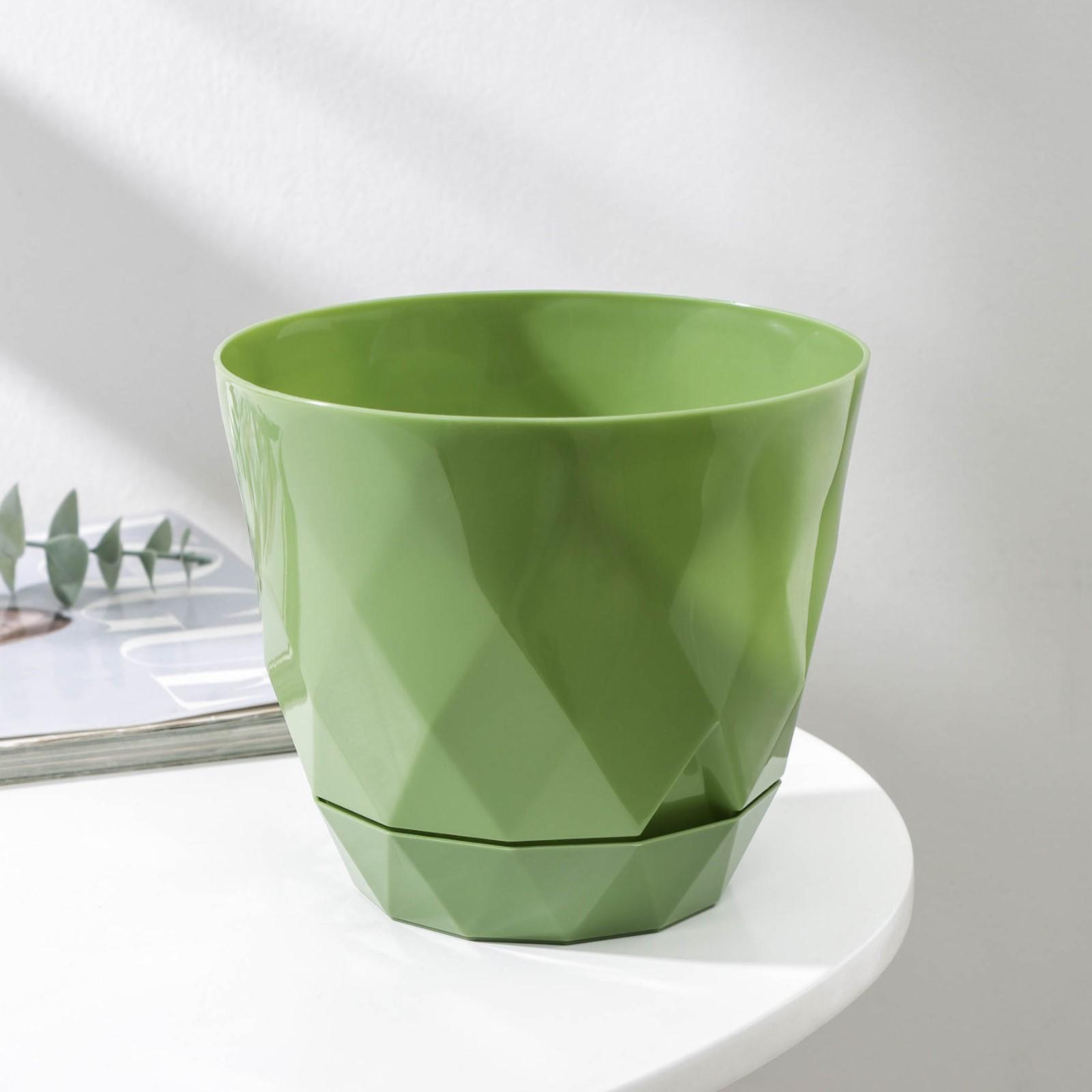 Горшок для цветов с поддоном Laurel, 1,3 л, d=14,5 см, h=12,5 см, цвет зелёный