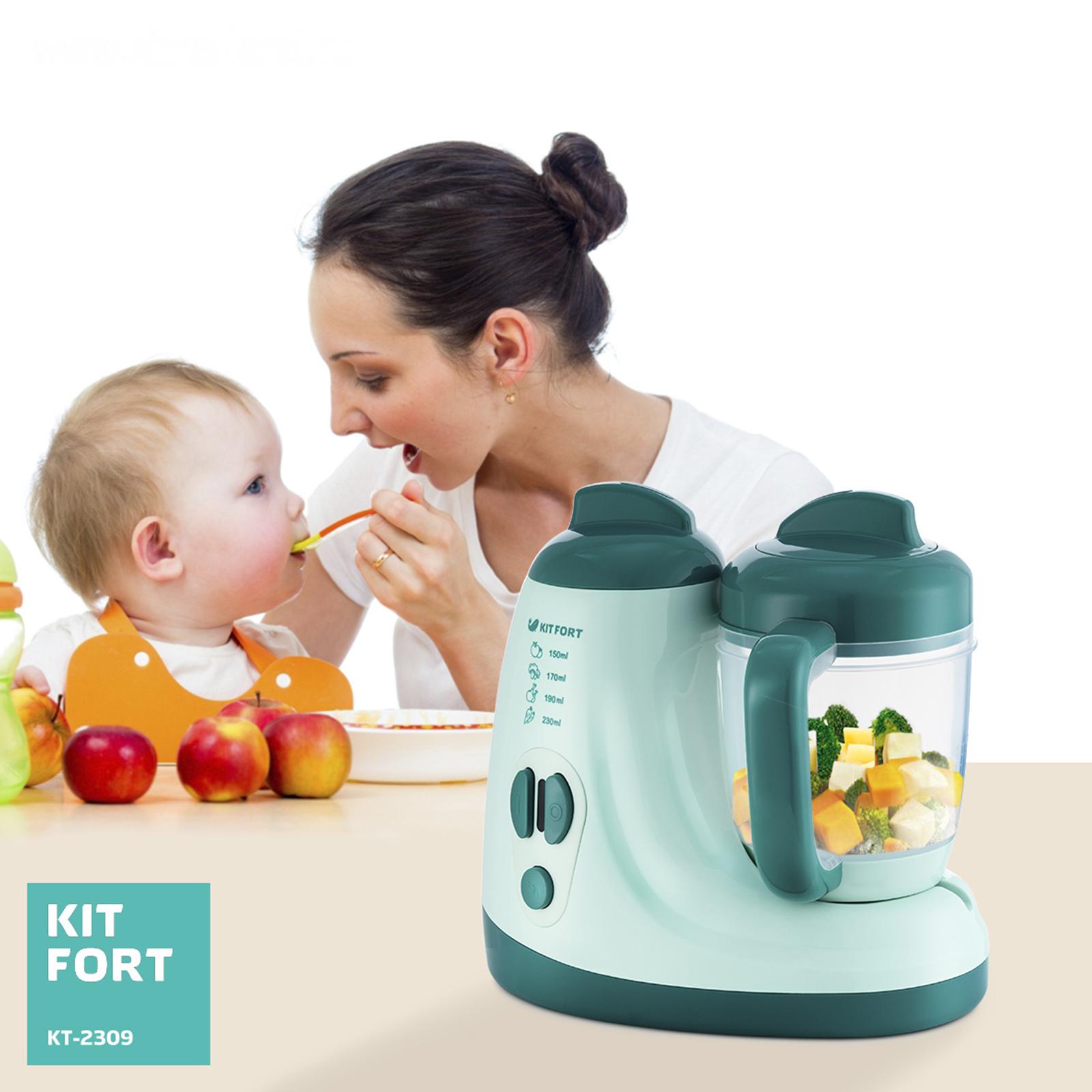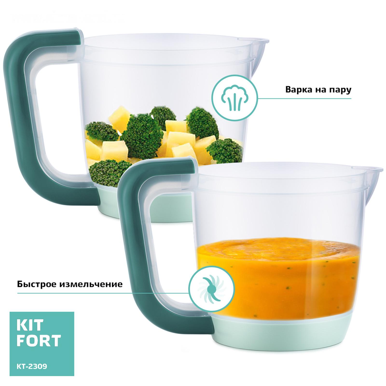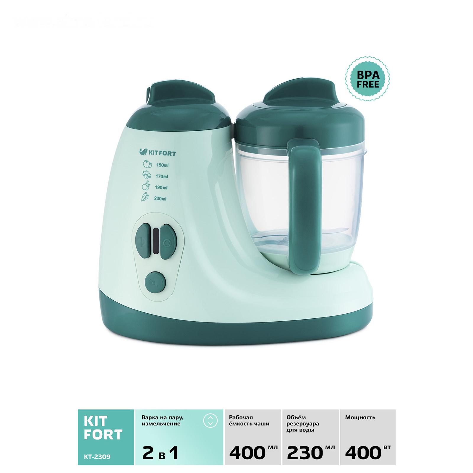 Блендер-пароварка Kitfort КТ-2309, 400 Вт, 0.4 л, бирюзовая
