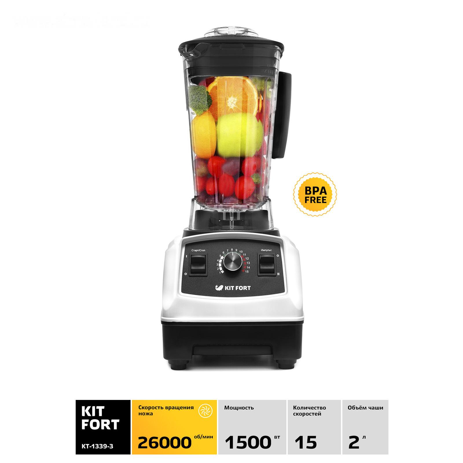 Блендер Kitfort KT-1359-3, стационарный, 1500 Вт, 2 л, 15 скоростей, белый