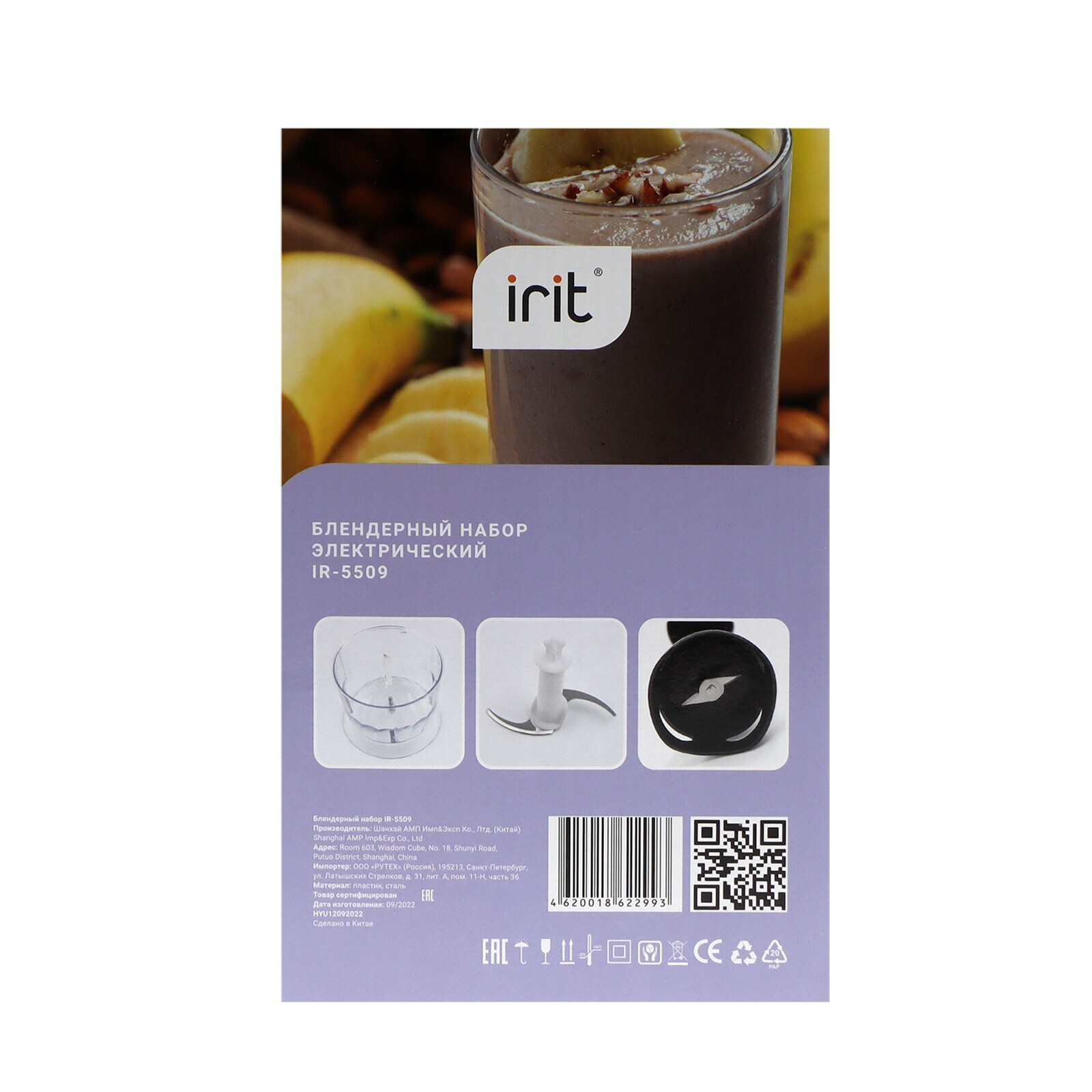 Блендер Irit IR-5509, погружной, 200 Вт, 0.6 л, 2 скорости, чёрный