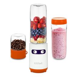 Блендер Shake & Take Kitfort KT-3033-4, портативный, 150 Вт, 0.3/0.5 л, бело-оранжевый