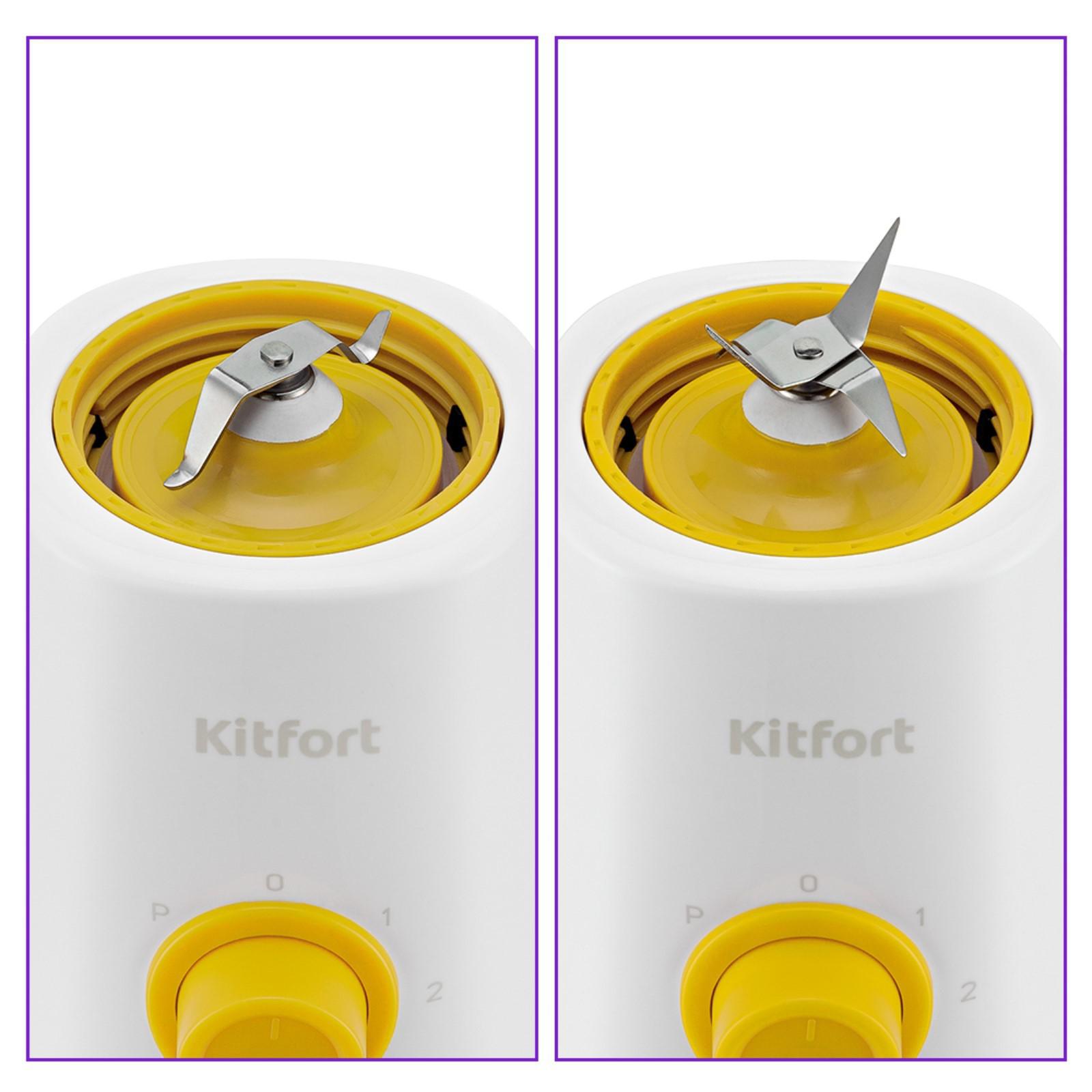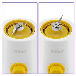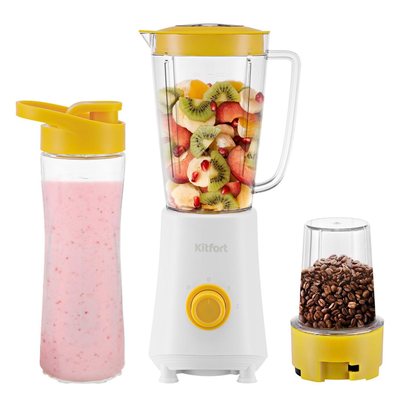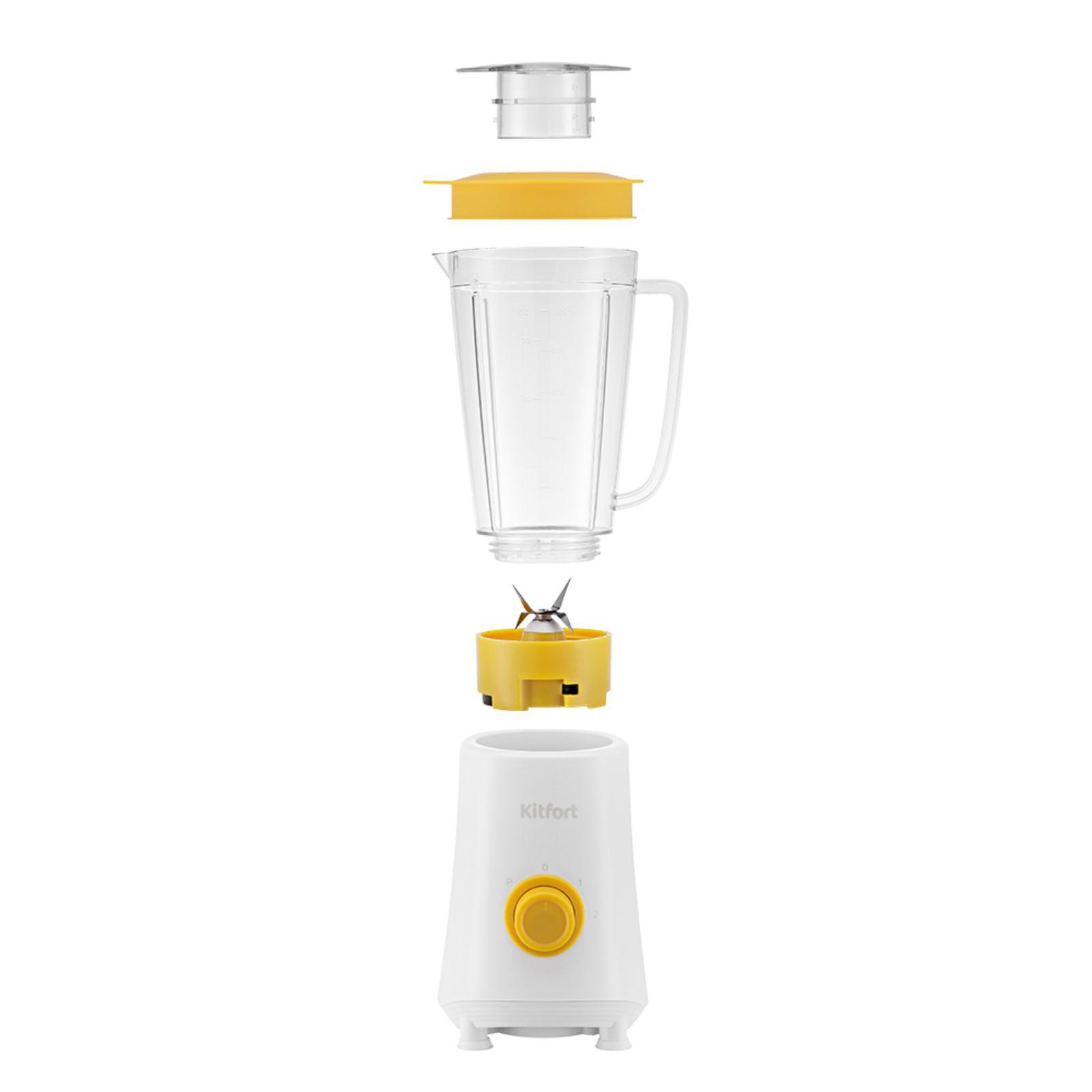Блендер Kitfort КТ-3055-2, стационарный, 300 Вт, 1/0.6/0.15 л, 2 скорости, бело-жёлтый