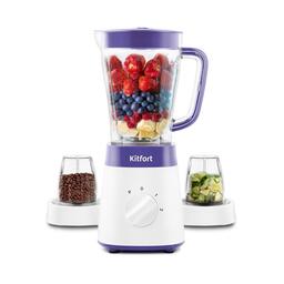 Блендер Kitfort КТ-3031-1, стационарный, 500 Вт, 1.5/0.3/0.3 л, 2 скорости, бело-фиолетовый 760269