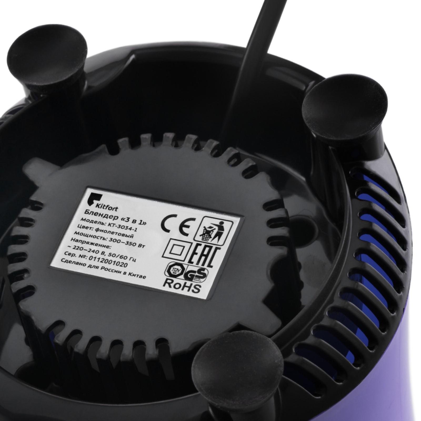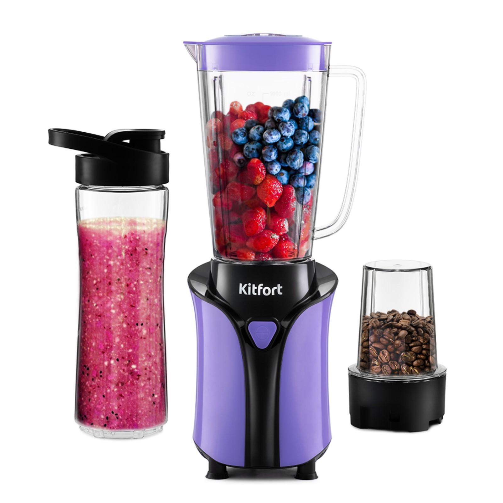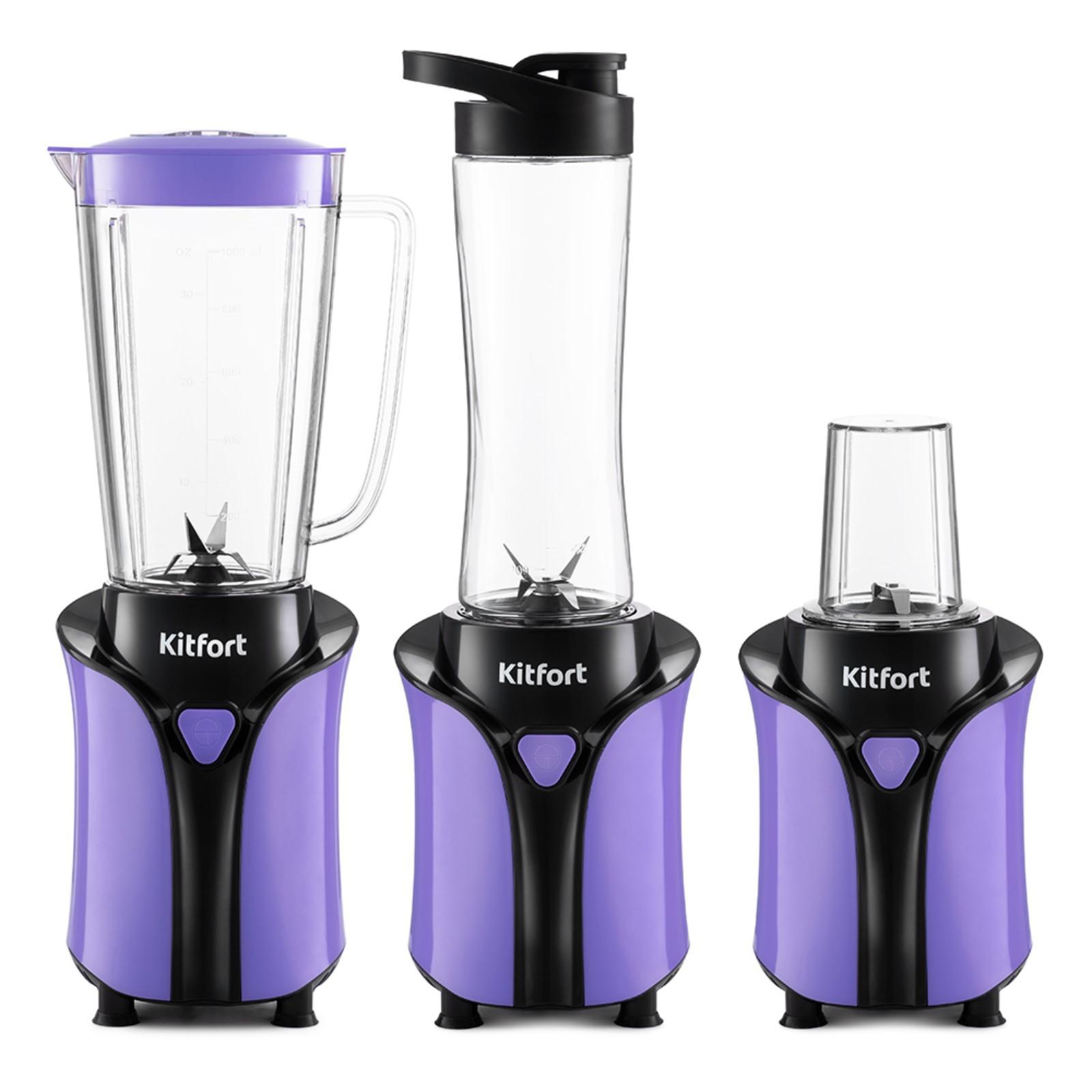 Блендер Kitfort КТ-3034-1, стационарный, 350 Вт, 1/0.6/0.05 л, 1 скорость, фиолетовый