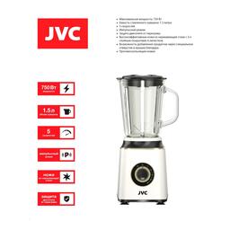 Блендер JVC JK-SB5225, стационарный, 750 Вт, 1.5 л, 5 скоростей, стекло, бело-чёрный