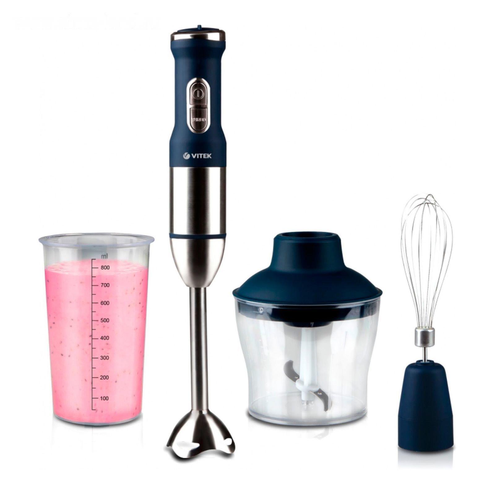 Блендер Vitek VT-3415 B, 900 Вт, 15 скоростей, 3 насадки, погружной, синий