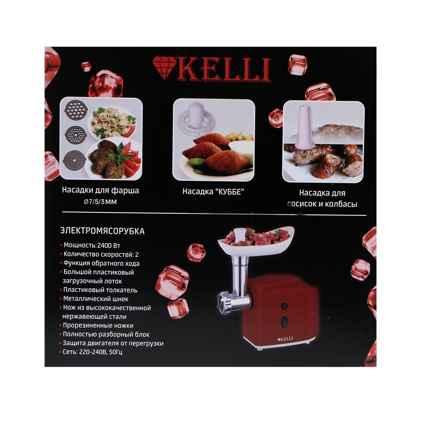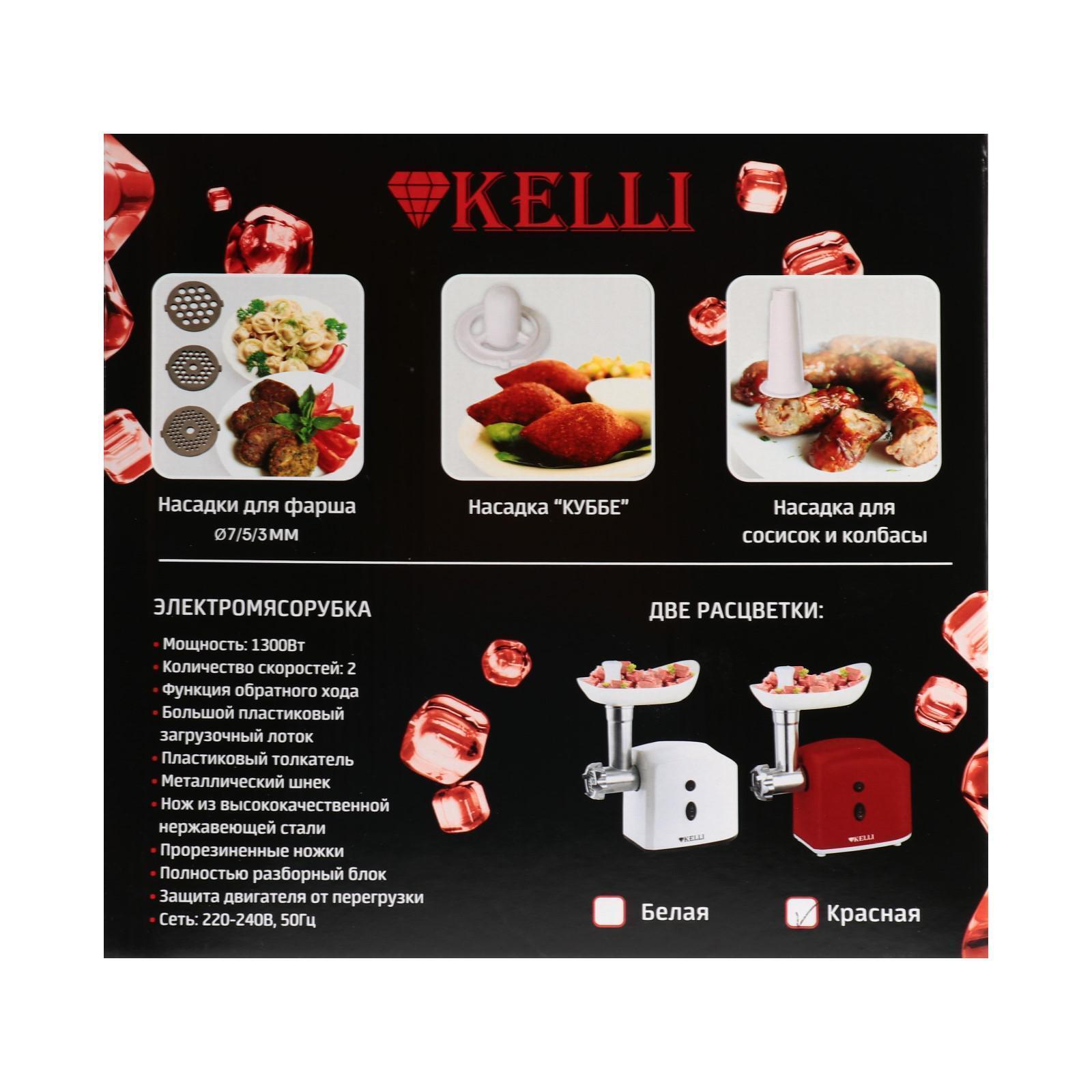 Мясорубка электрическая KELLI KL-5003, 1300 Вт, 2 скорости, 2 насадки, красная