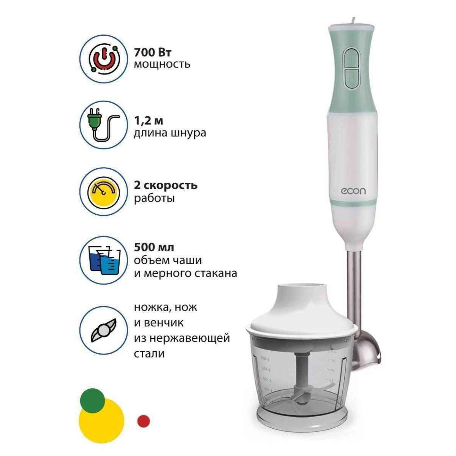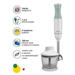 Блендер Econ ECO-432HB, погружной, 700 Вт, 0.5/0.5 л, 2 скорости, 3 насадки, фисташковый
