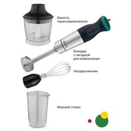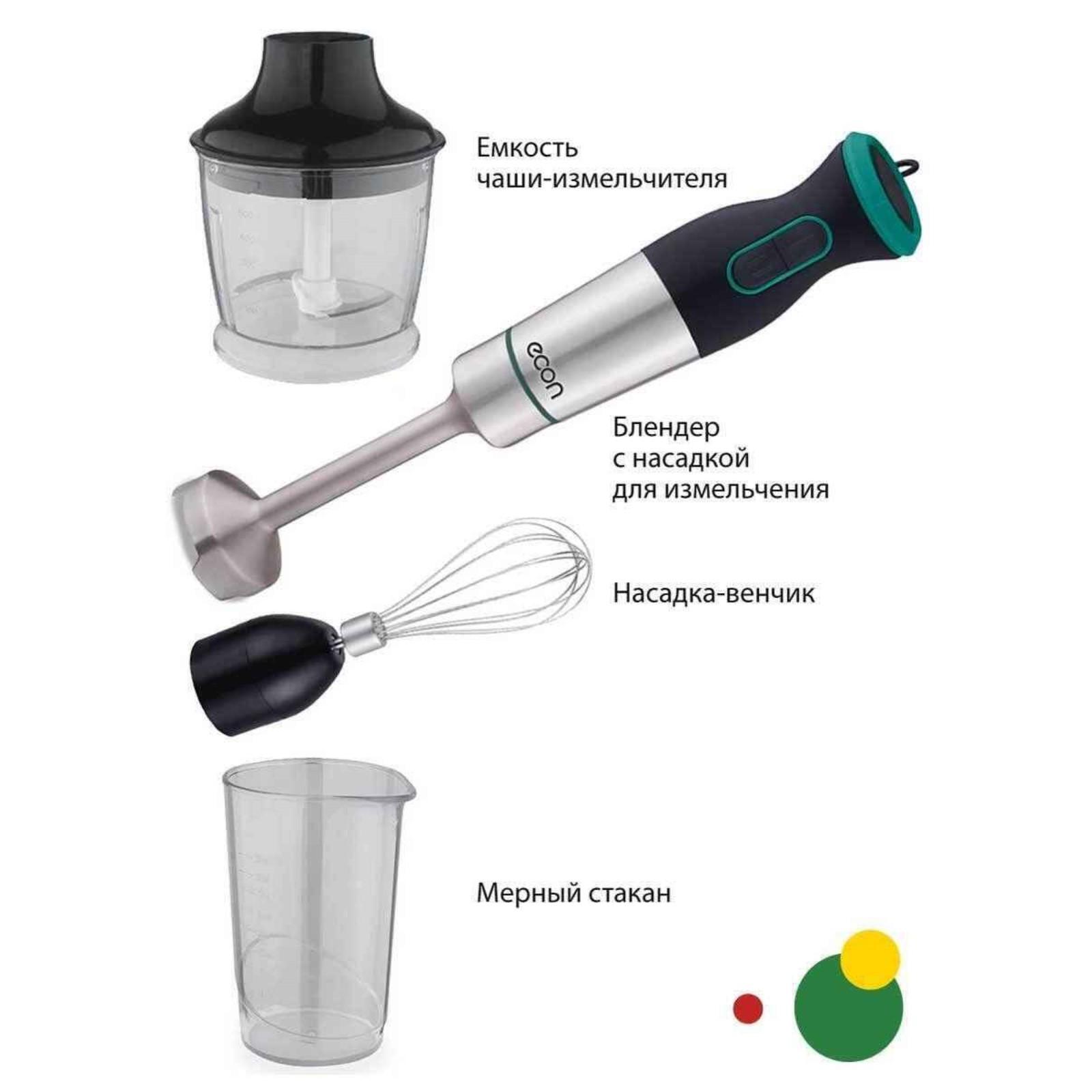Блендер Econ ECO-434HB, погружной, 1000 Вт, 0.5/0.5 л, 2 скорости, 2 насадки, чёрно-зелёный