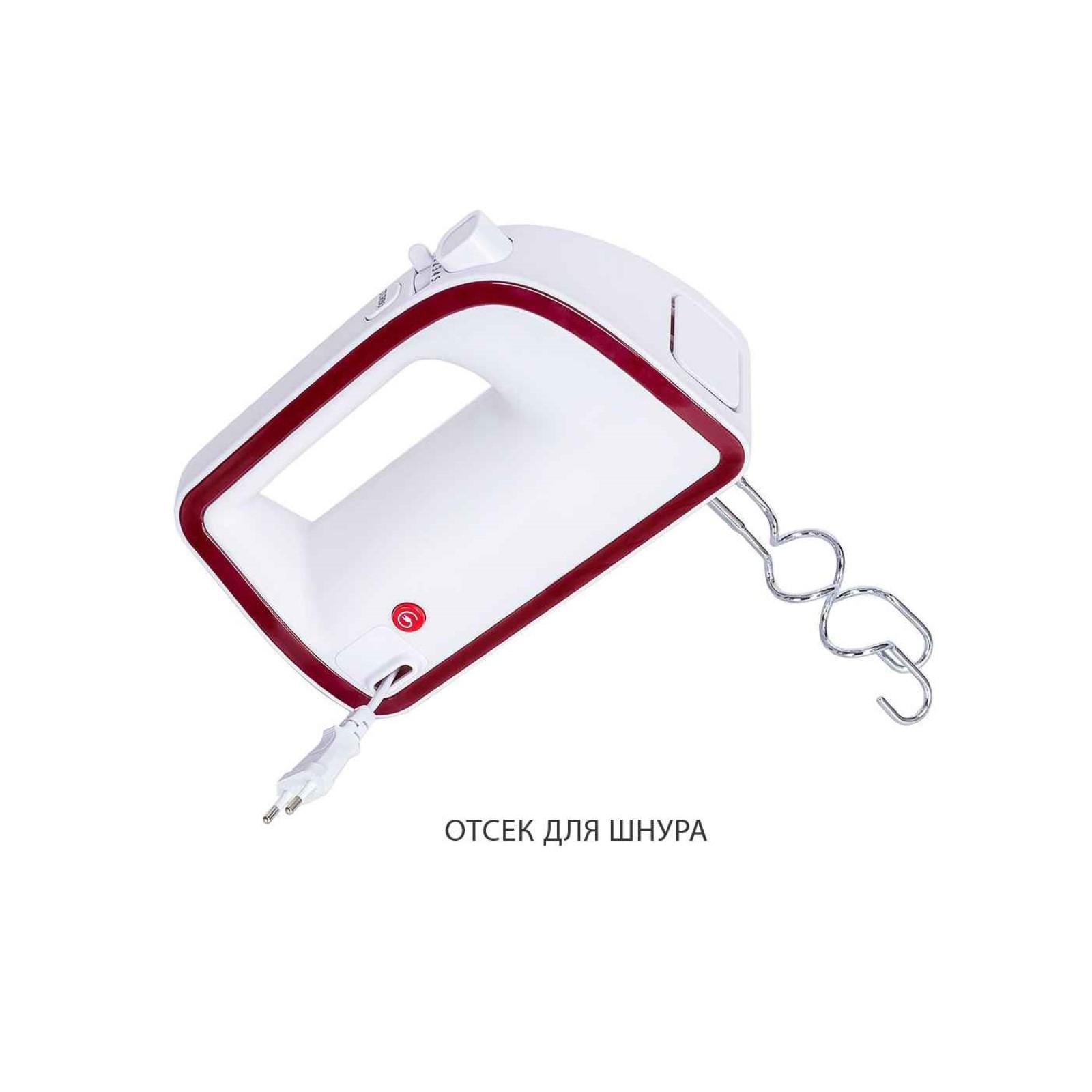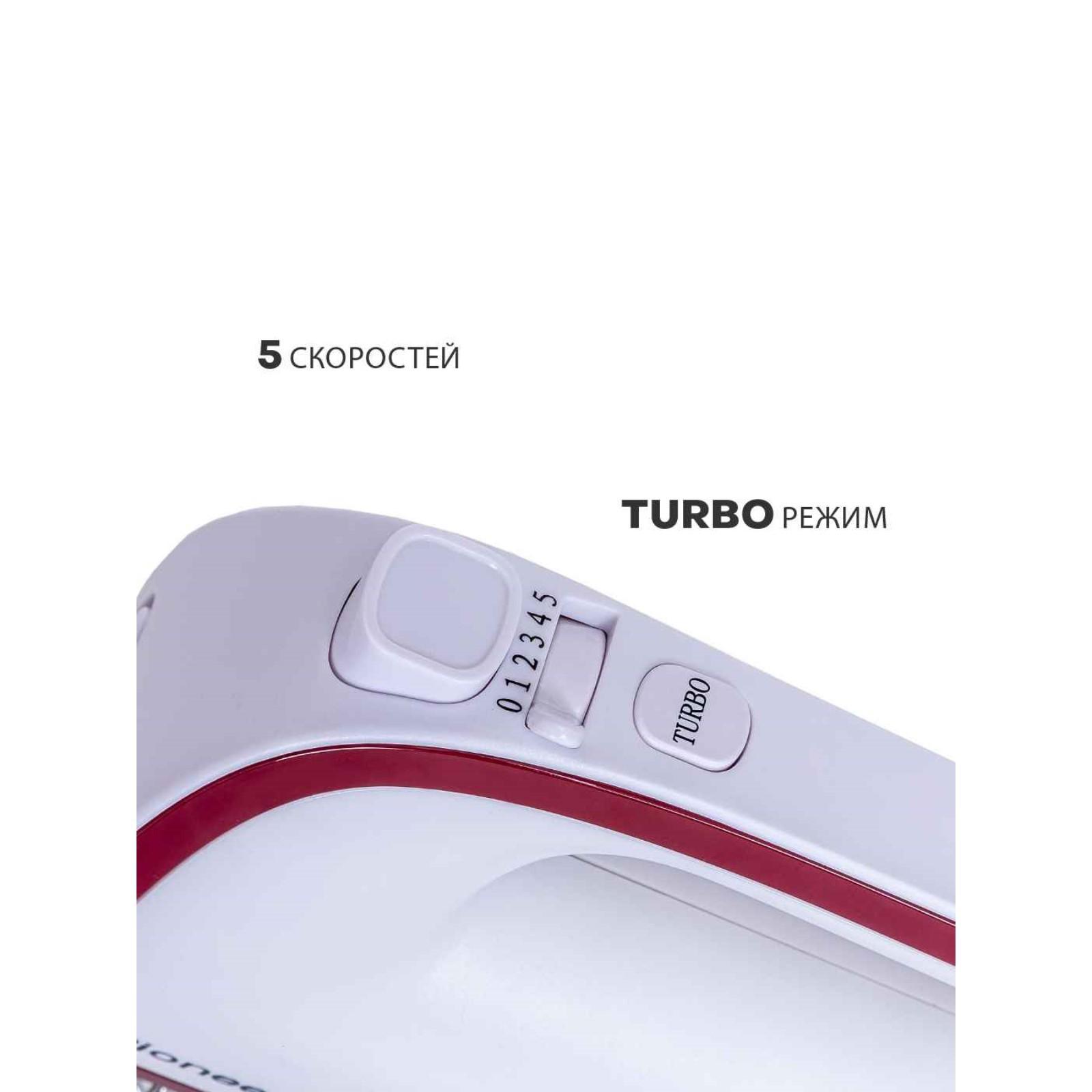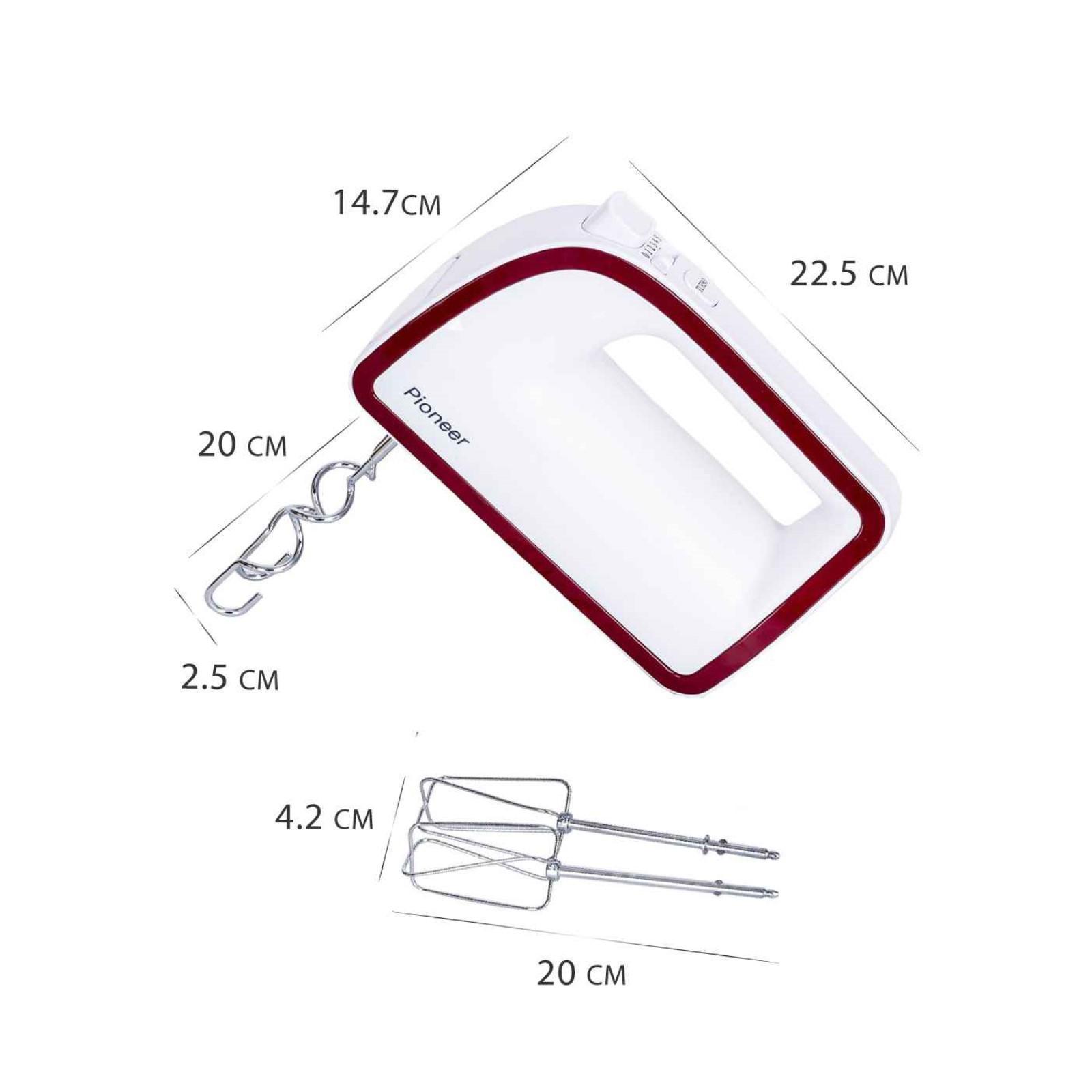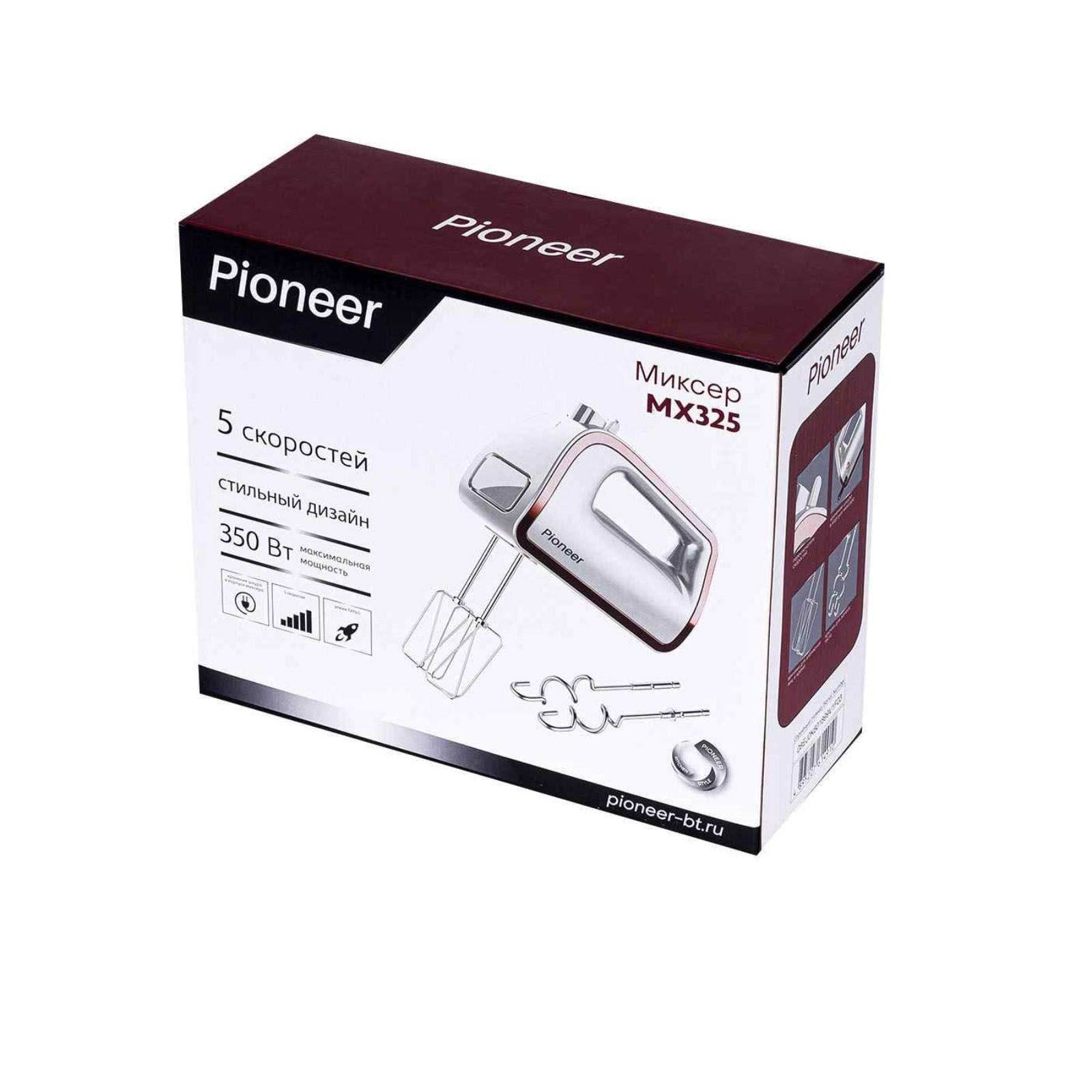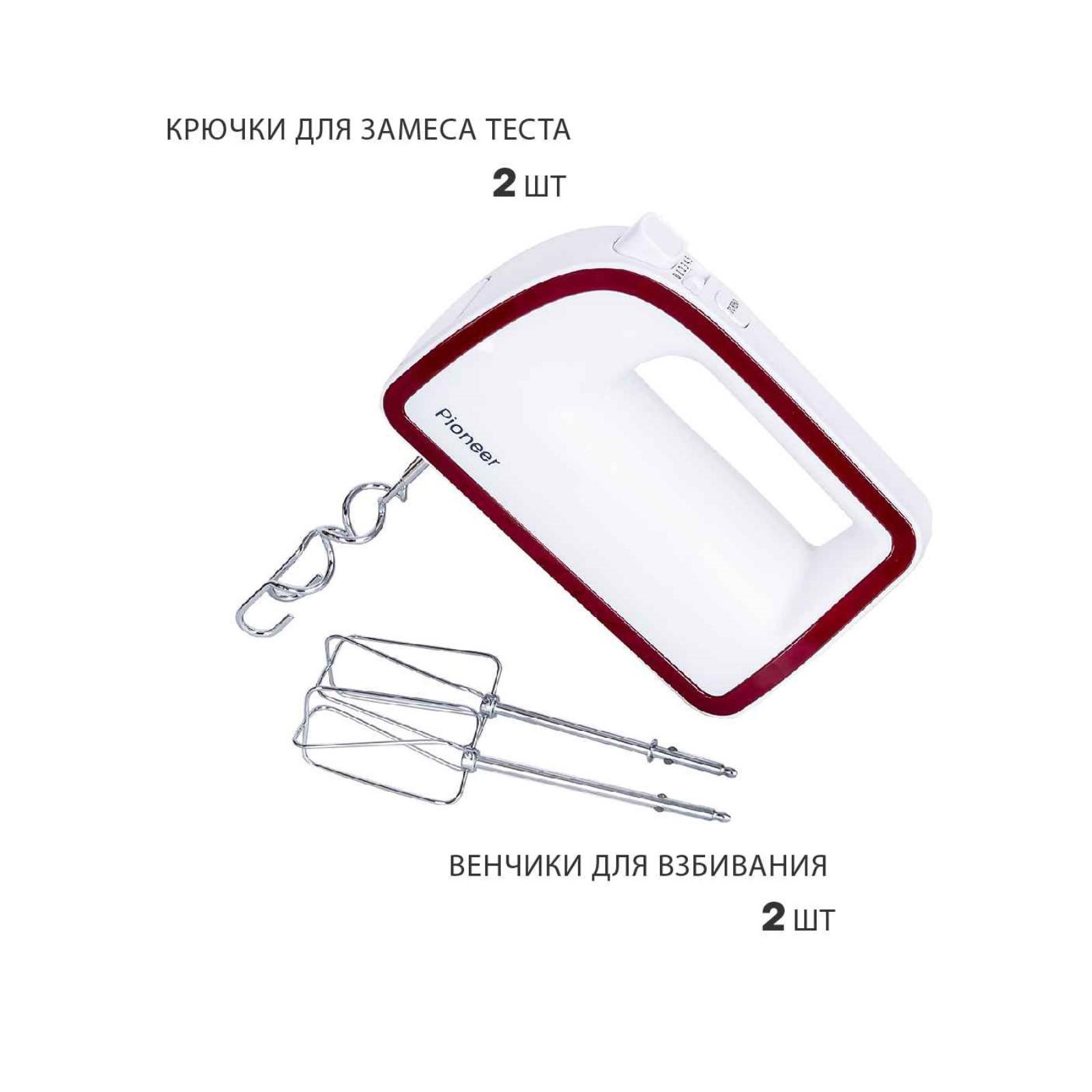 Миксер Pioneer MX325, ручной, 350 Вт, 5 скоростей, 2 насадки, бело-бордовый