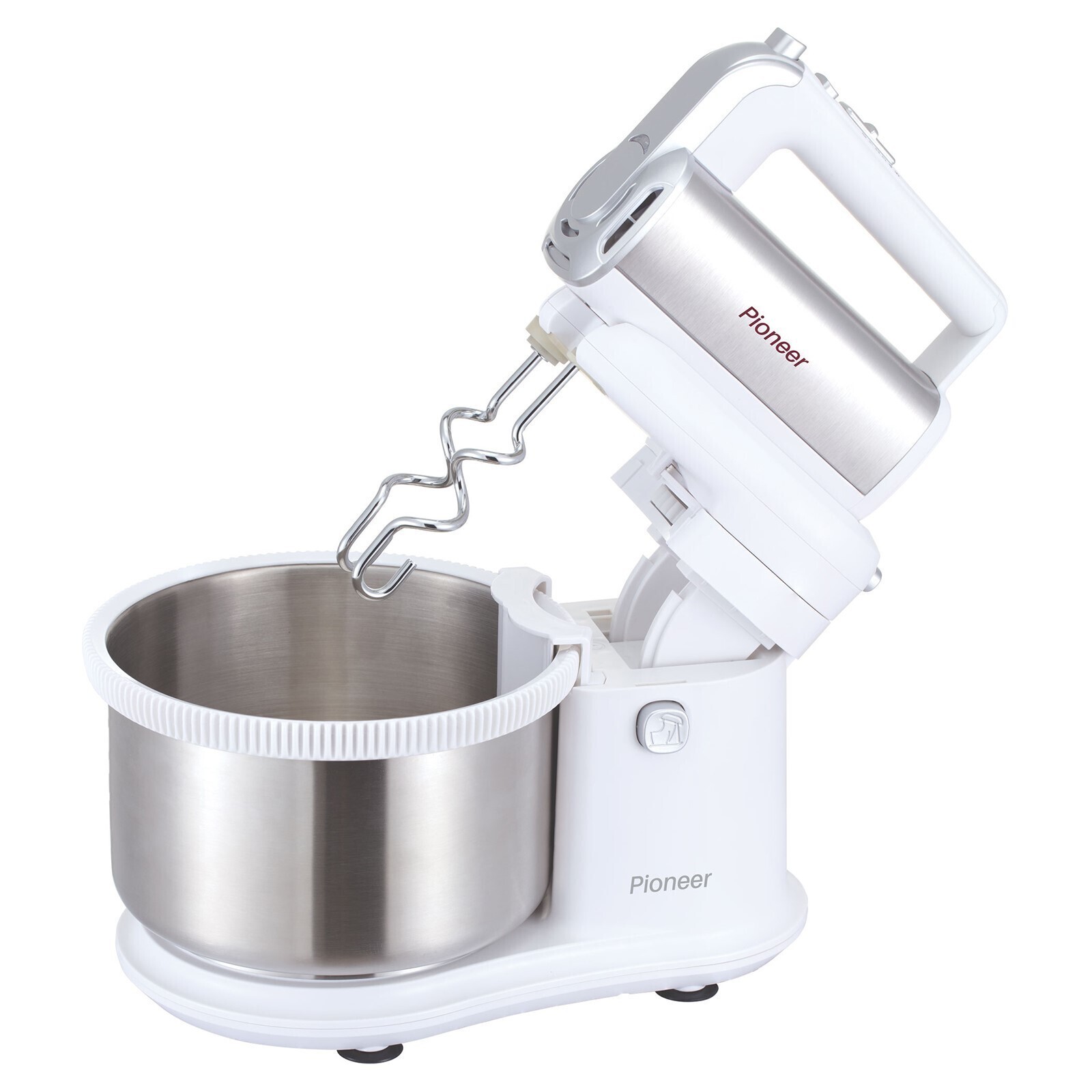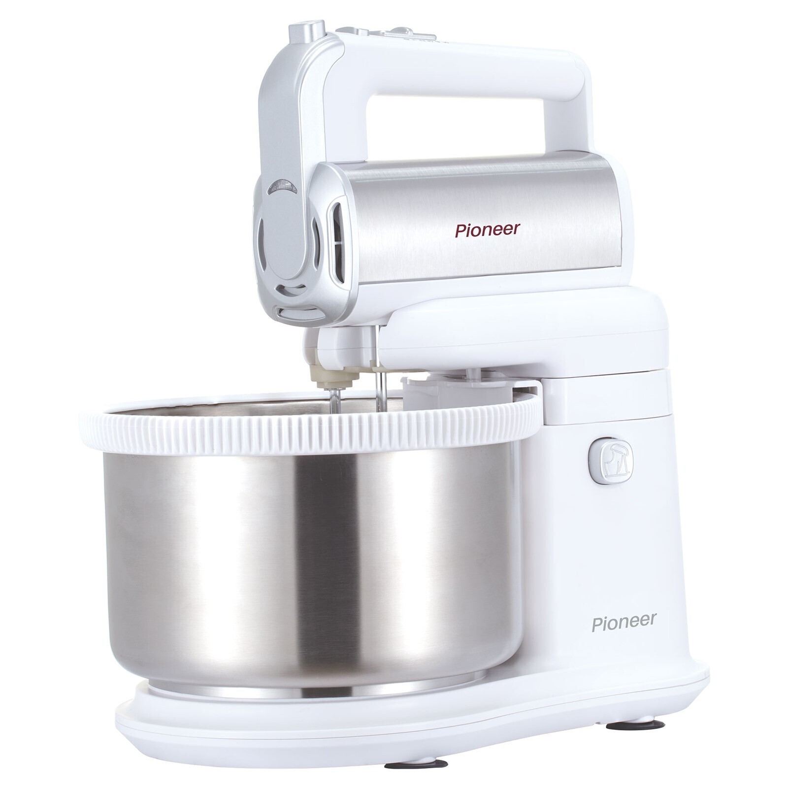 Миксер Pioneer MX345, планетарный, 450 Вт, 4 л, 5 скоростей, цвет белый с серебристым