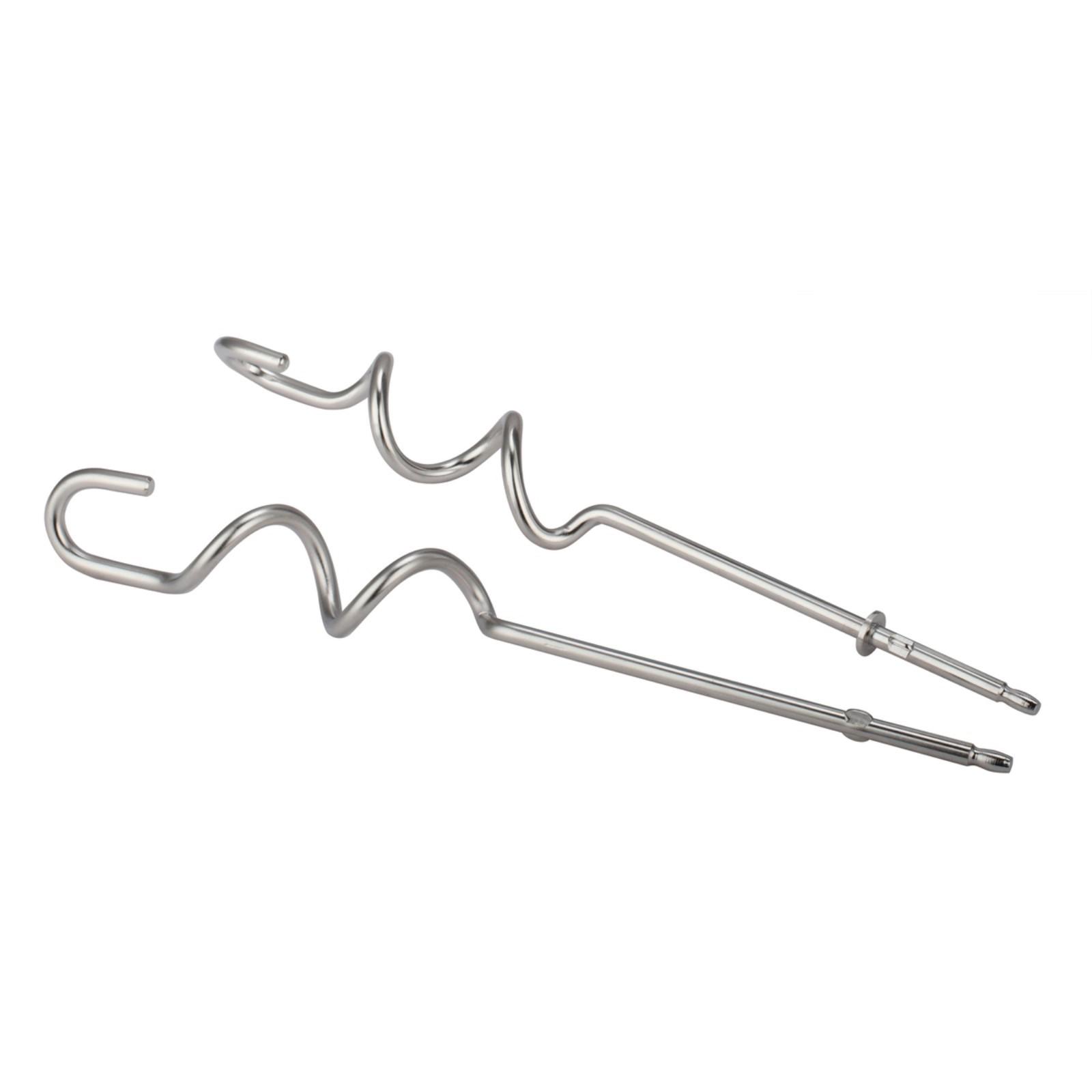 Устройство поставляется с двумя типами насадок: венчиками, которые оптимальны для взбивания жидких по консистенции продуктов, и крюков, предназначенных для приготовления густого теста.