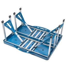 Складной стол-чемодан, вмещает в себя 4 раскладных стула из высококачественного алюминиевого сплава. Каркас стола изготовлен и прочного алюминия, обшитый прочным пластиковым покрытием.