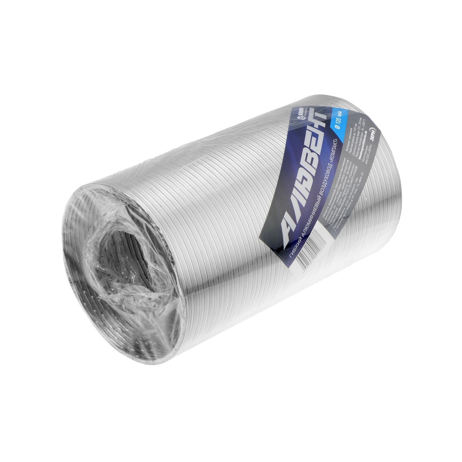 Воздуховод гофрированный "Алювент", d=125 мм, раздвижной до 1.5 м, алюминиевый