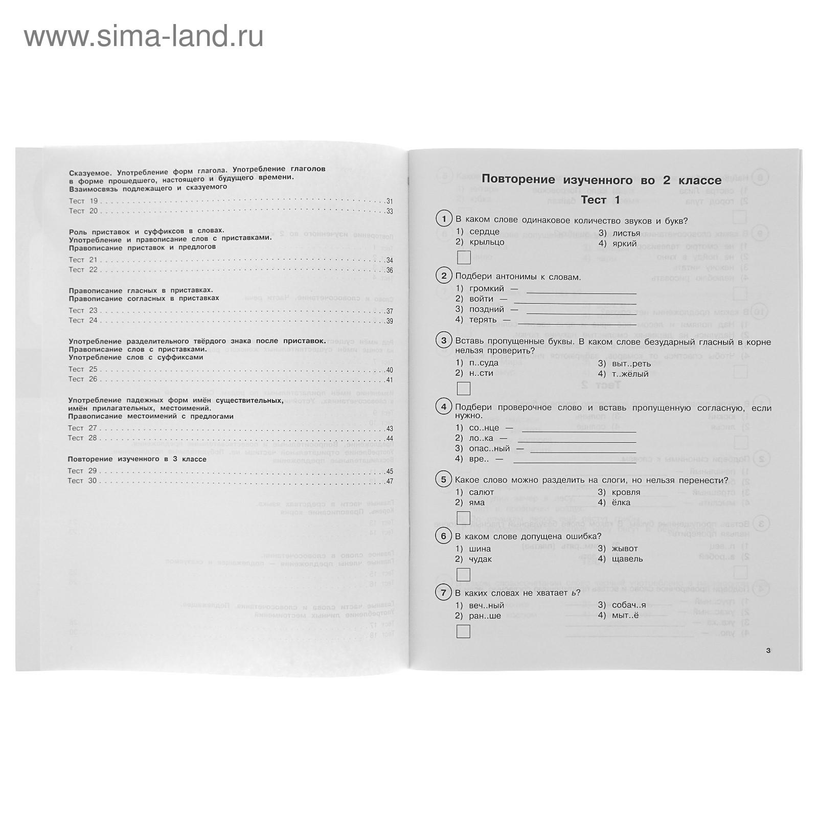В этом пособии предлагаются тесты по всем основным темам русского языка для 3-го класса:
