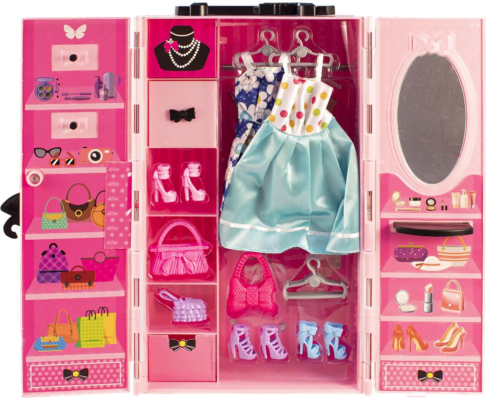- Вид аксессуара вешалка для одежды (3 шт), шкаф, ящик, одежда (платье - 2 шт), сумочка (3 шт), обувь (3 шт)