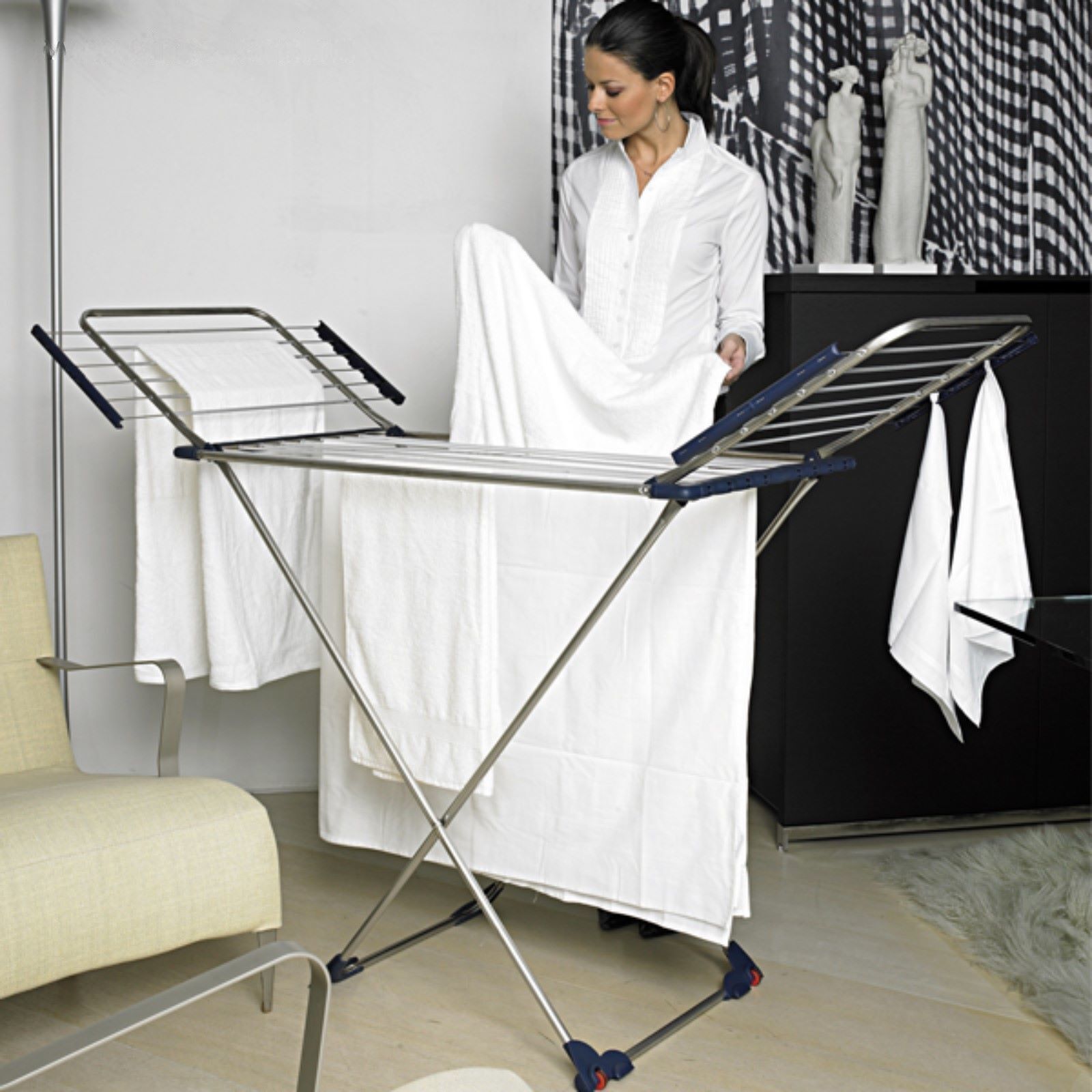 Сушилка имеет 2 боковые сушильные зоны, которые откидываются. Их можно раздвигать в ширину благодаря телескопическим направляющим.