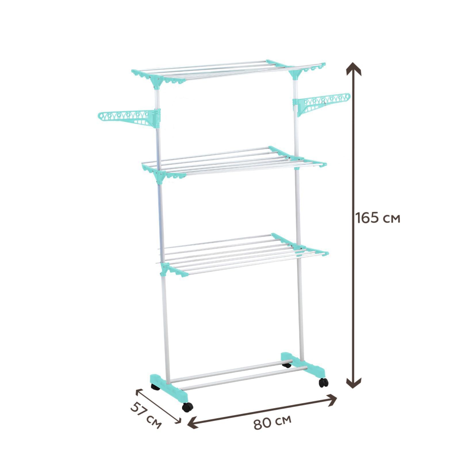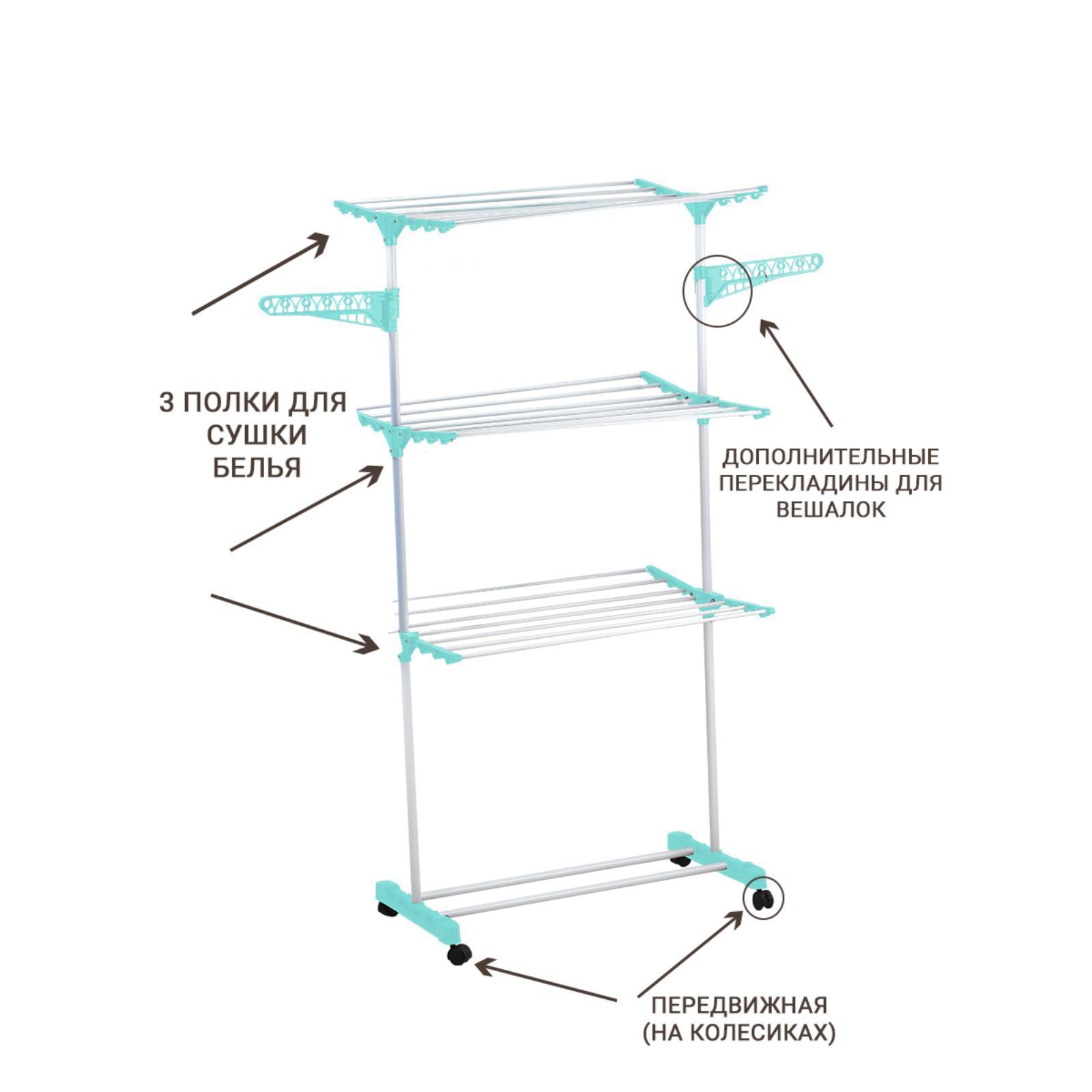 Сушилка для белья на 3 полки с перекладинами для вешалок