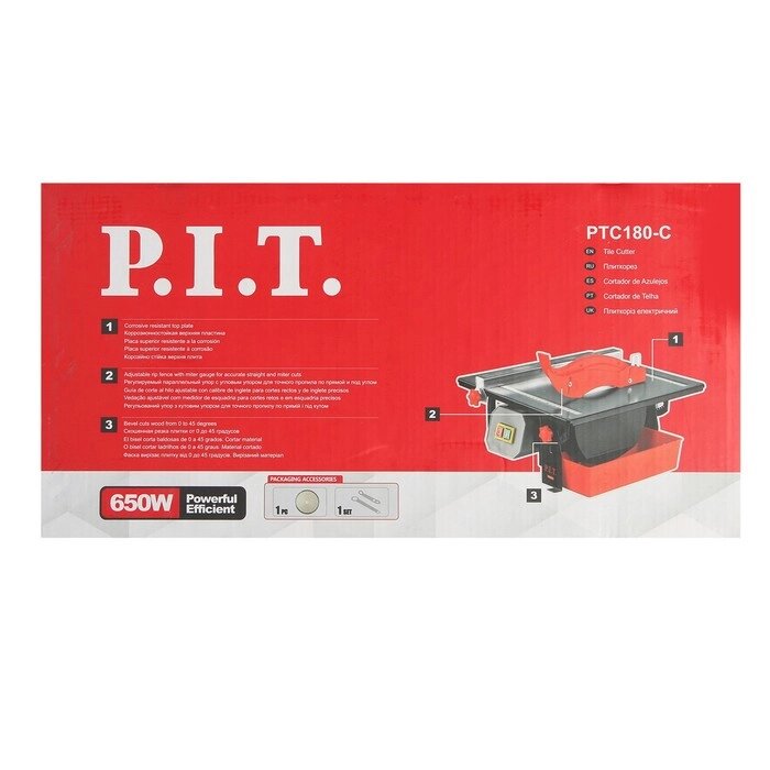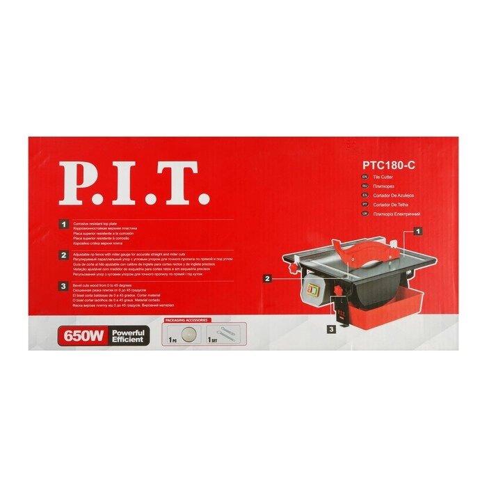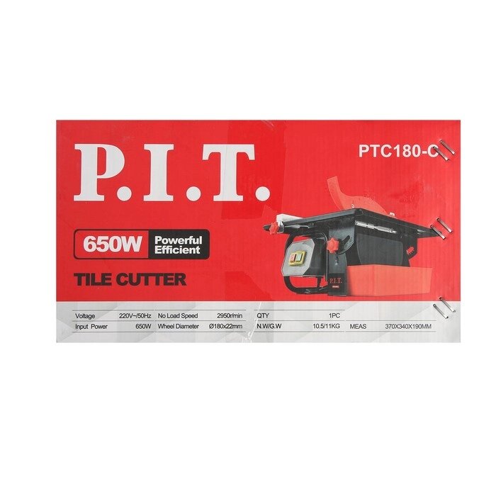 Плиткорез электрический P. I. T. PTC180-C, 650 Вт, 2950 об/мин, 180х22.2 мм, стол 395х285 мм