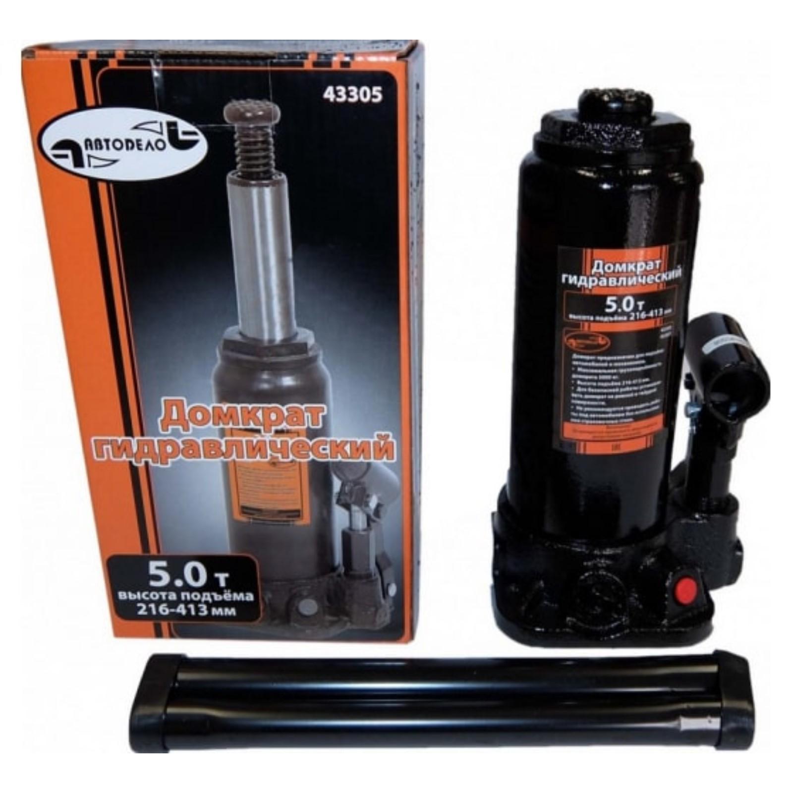 Домкрат гидравлический АВТОДЕЛО 43305, подъем/подхват 216/413 мм, 5 т