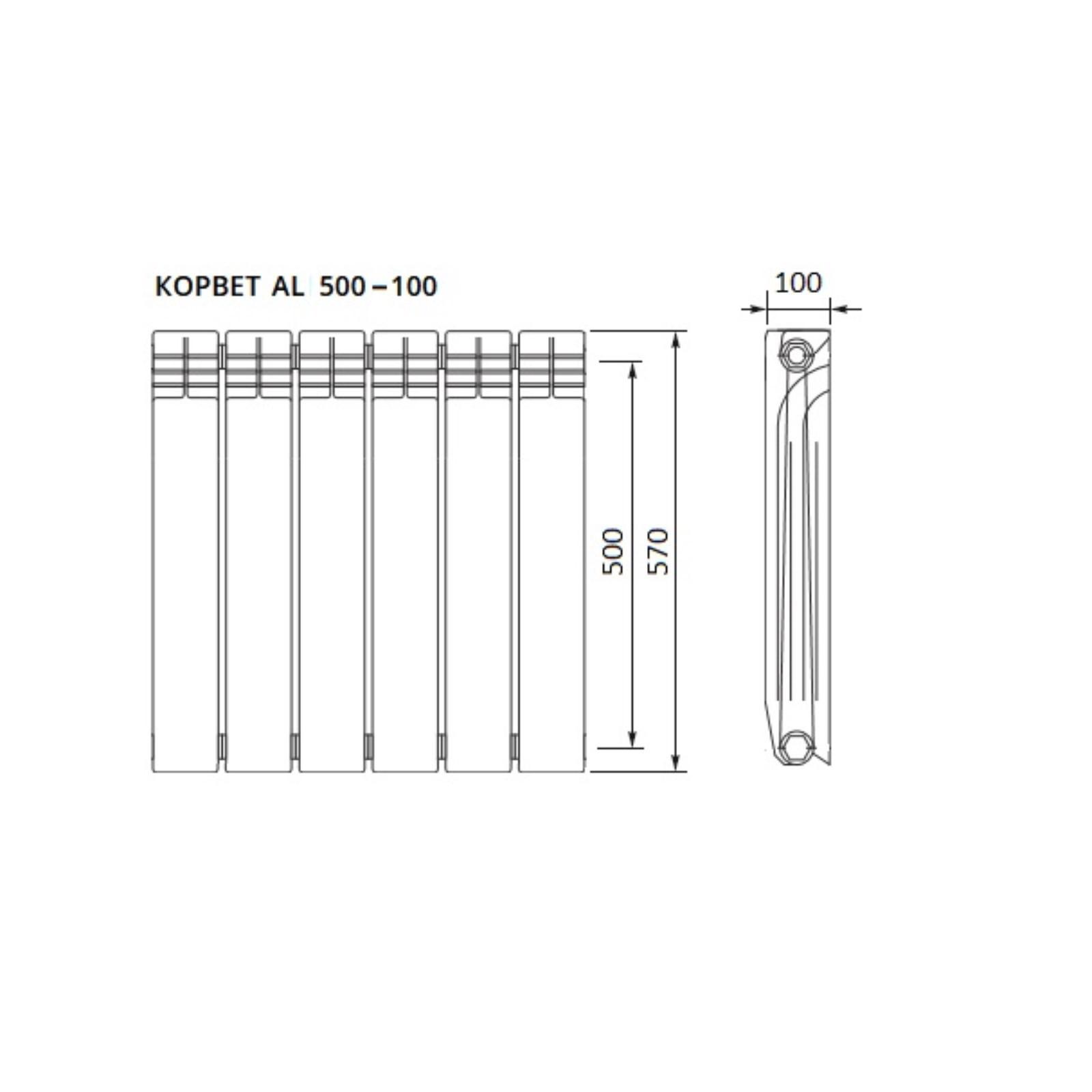 Радиатор алюминиевый "Русский Радиатор" КОРВЕТ, 500 x 100 мм, 8 секций