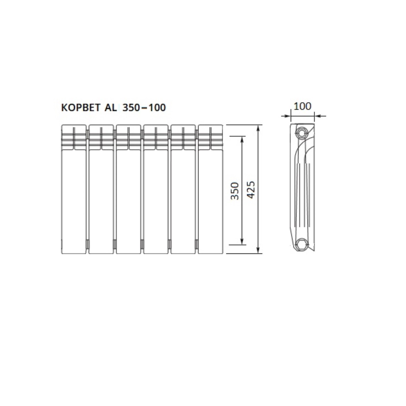 Радиатор алюминиевый "Русский Радиатор" КОРВЕТ, 350 x 100 мм, 8 секций