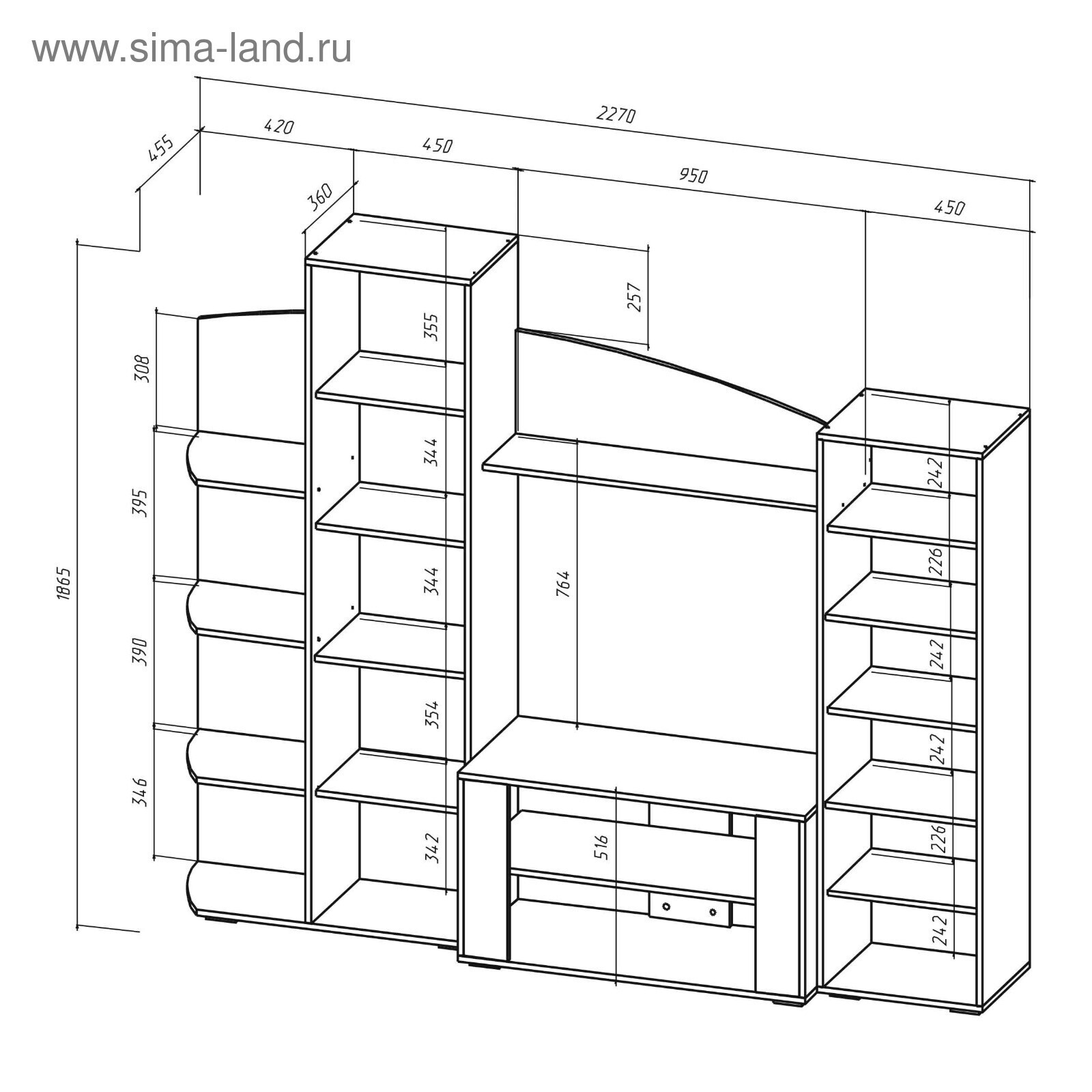 • Размер ниши для телевизора 765 х 950