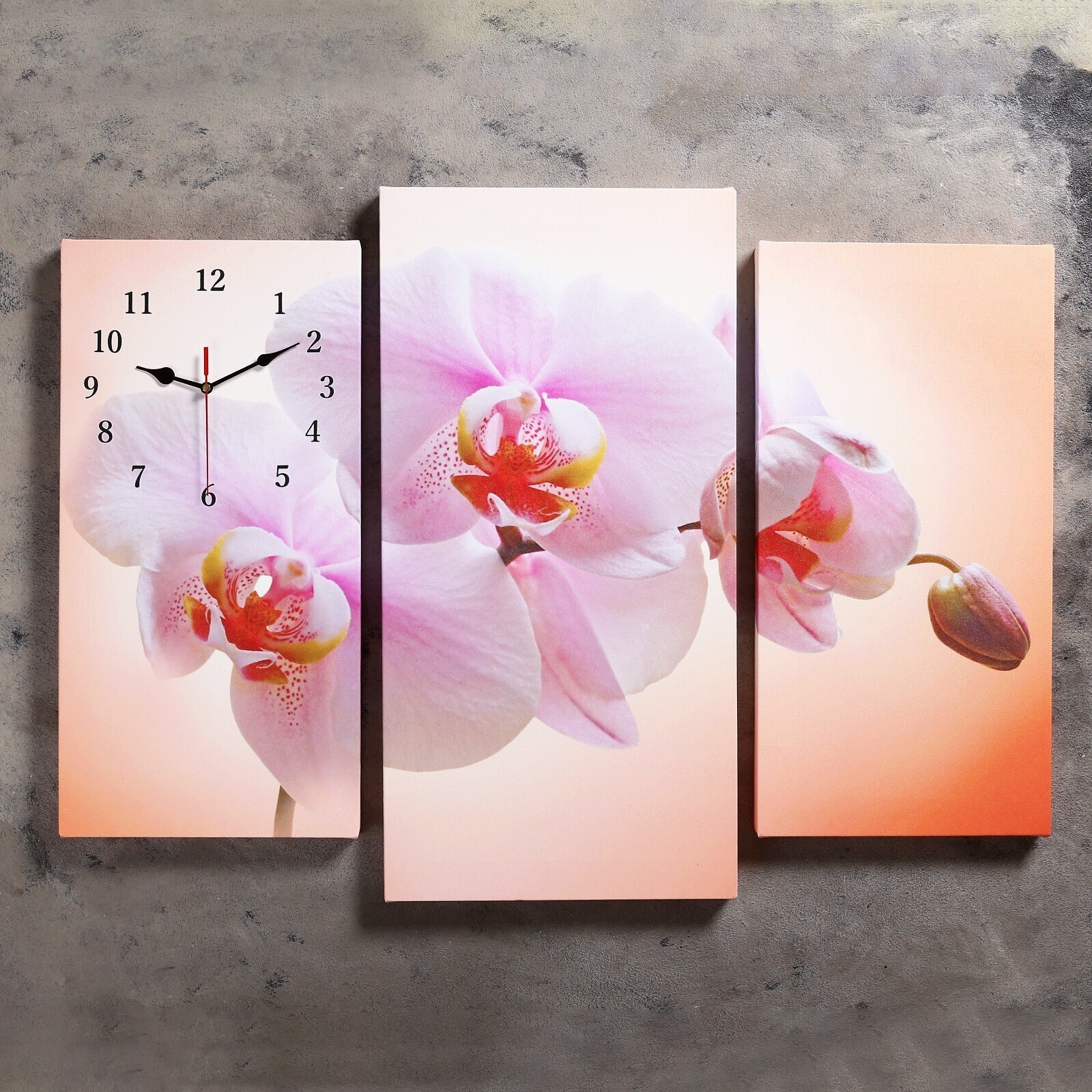 Часы настенные, модульные, серия: Цветы, "Розовая орхидея", 60х80 см