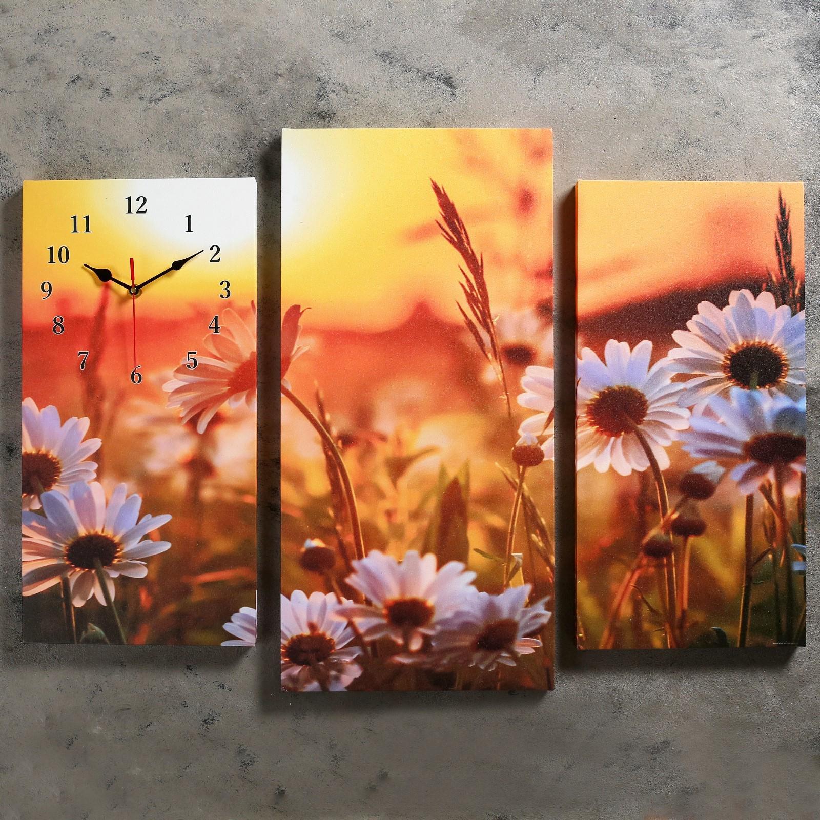 Часы настенные, модульные, серия: Цветы, "Ромашки на закате", 60х80 см