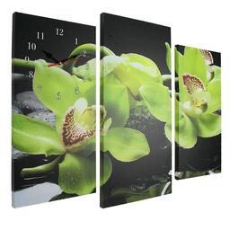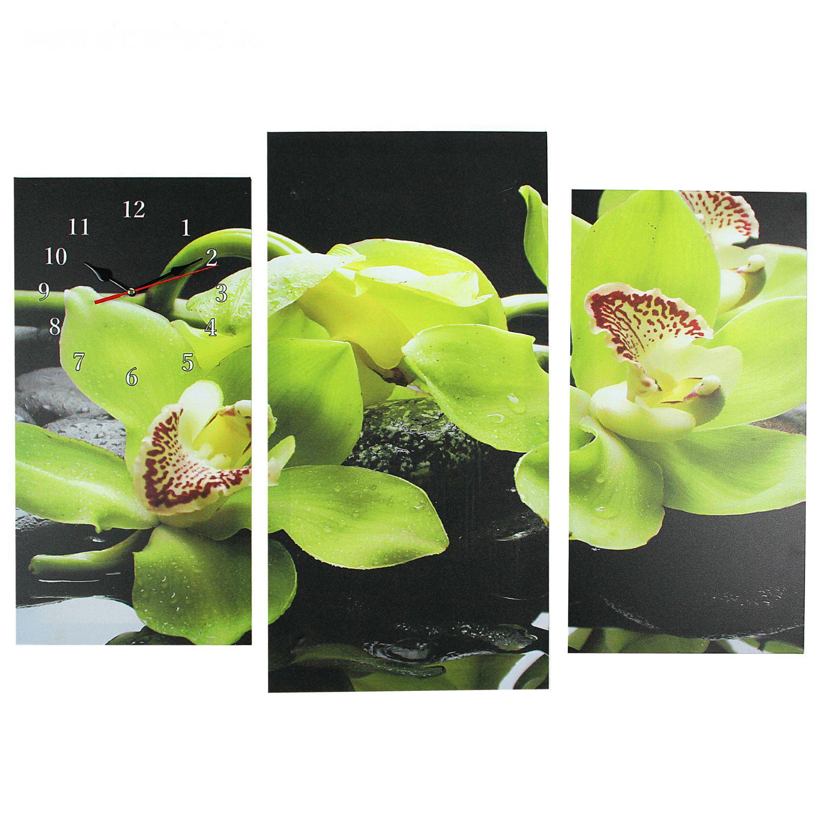 Часы настенные, модульные, серия: Цветы, "Зелёные орхидеи на камнях", 60х80 см