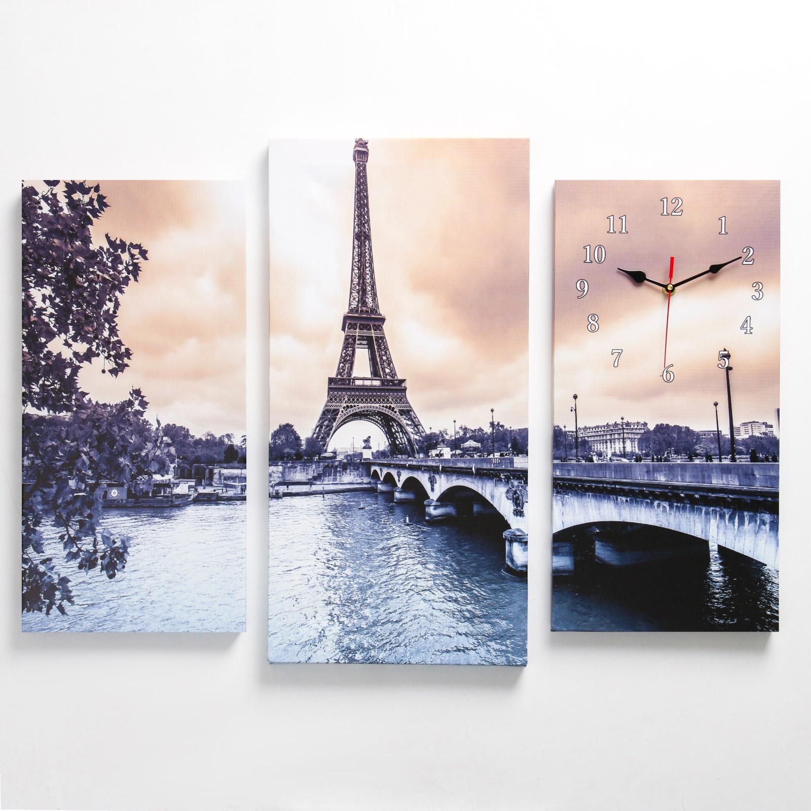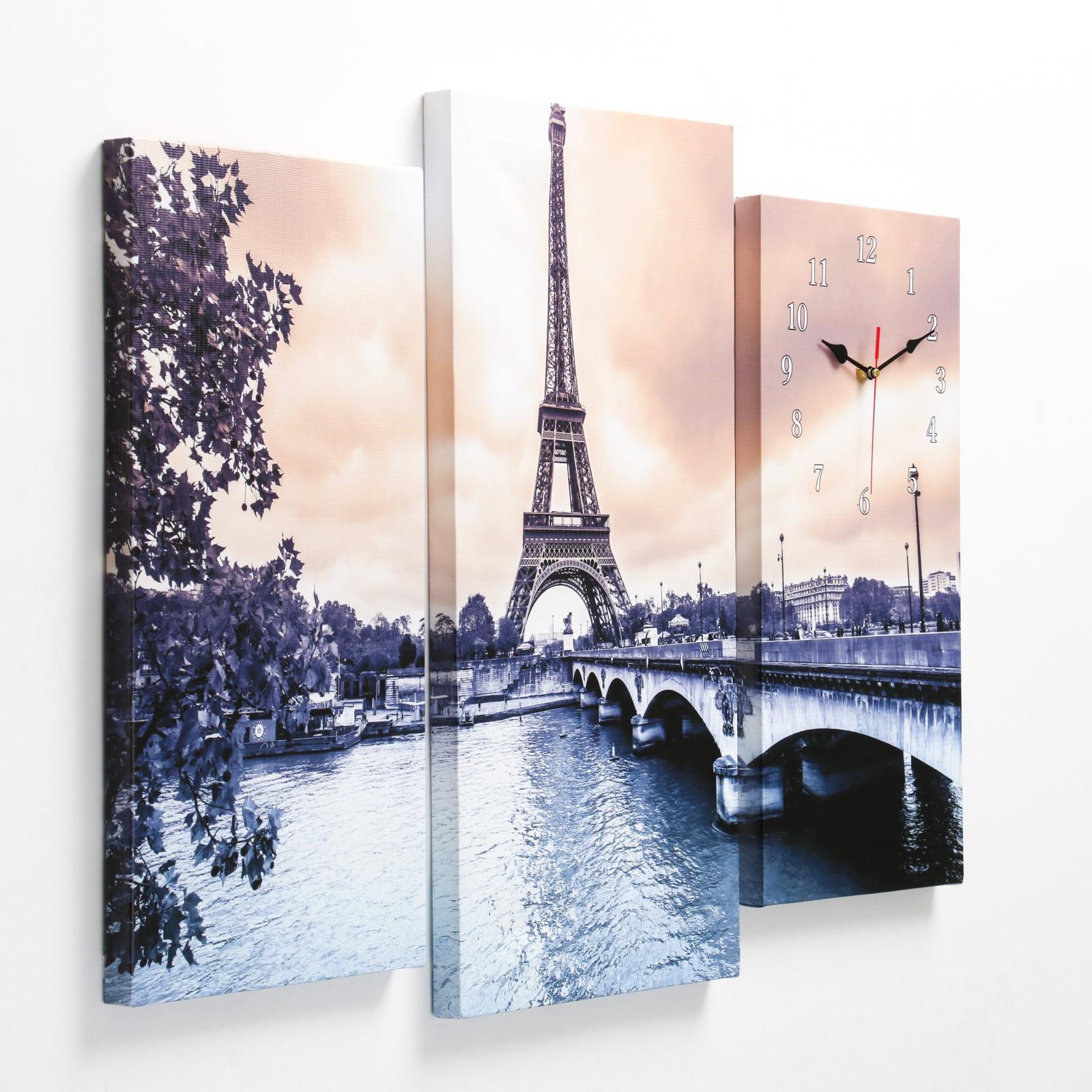 Часы настенные, на холсте, серия: Город, "Эйфелева Башня", 60 х 80