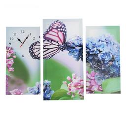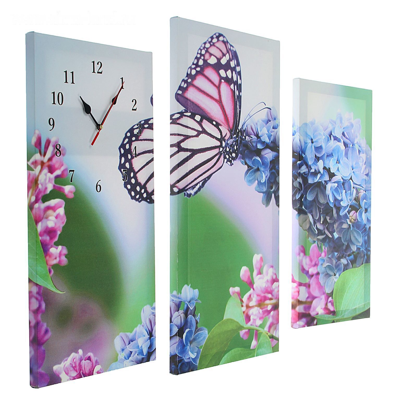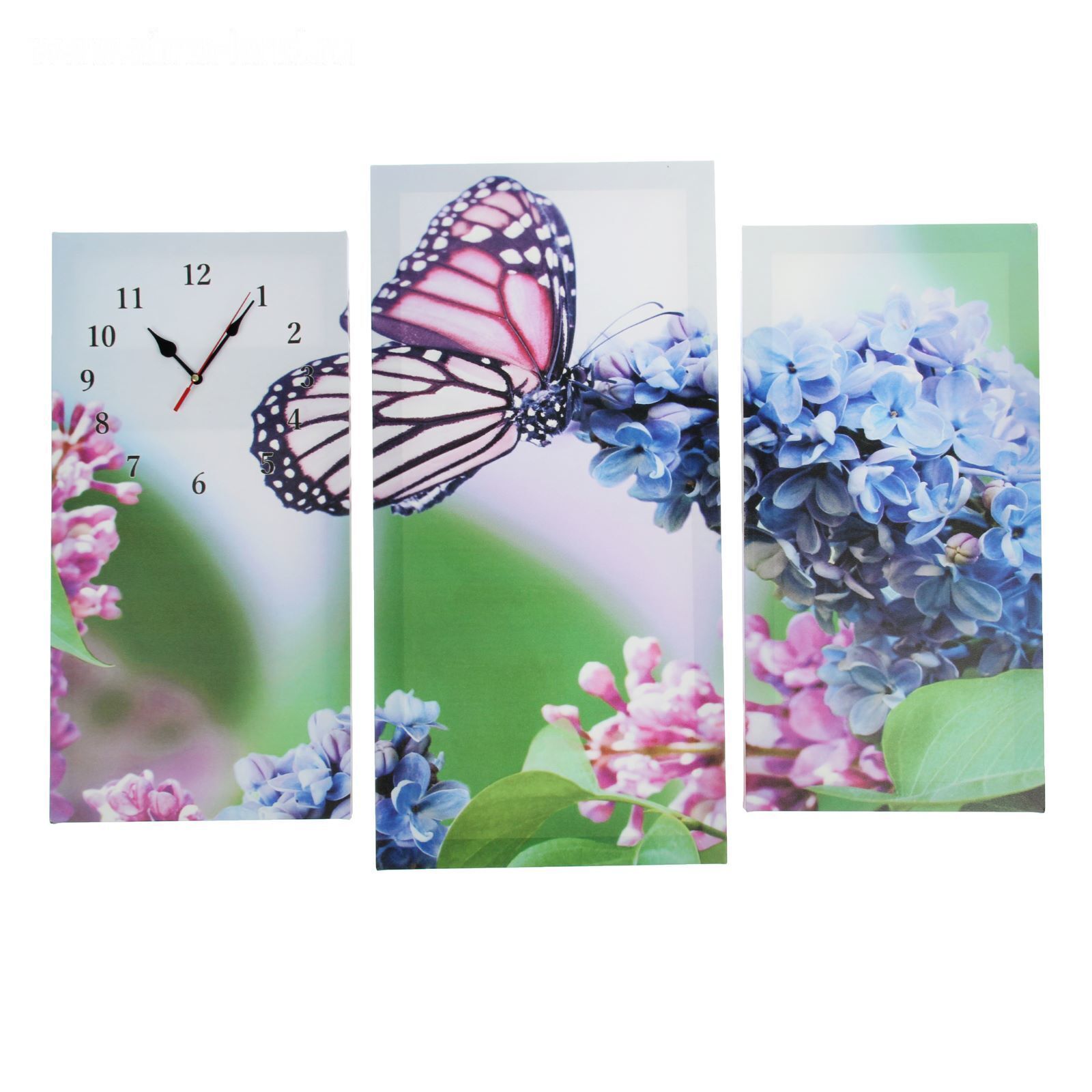 Часы настенные, модульные, серия: Цветы, "Бабочка на цветках", 60х80 см
