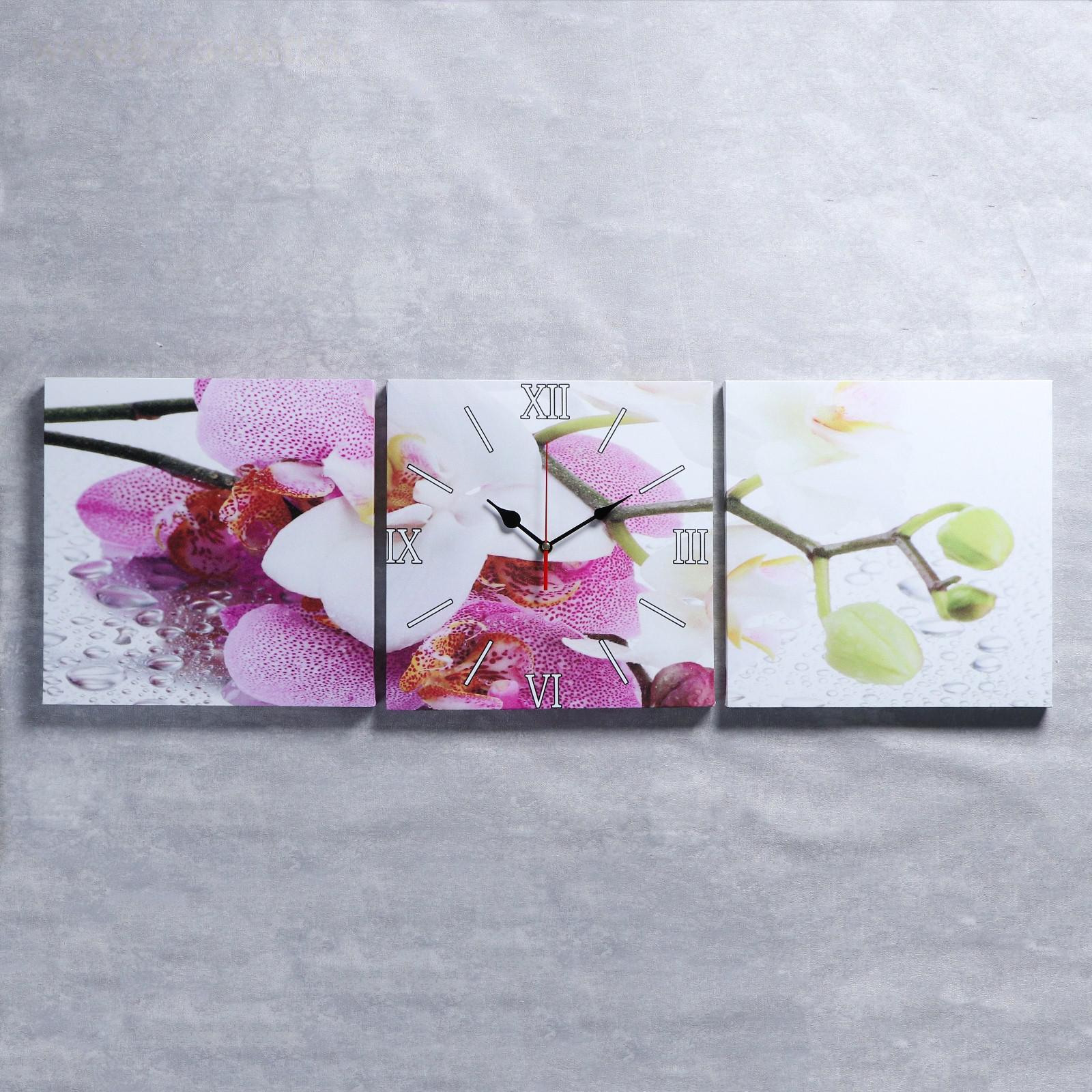 Часы настенные, модульные, серия: Цветы, "Орхидеи", 35х110 см