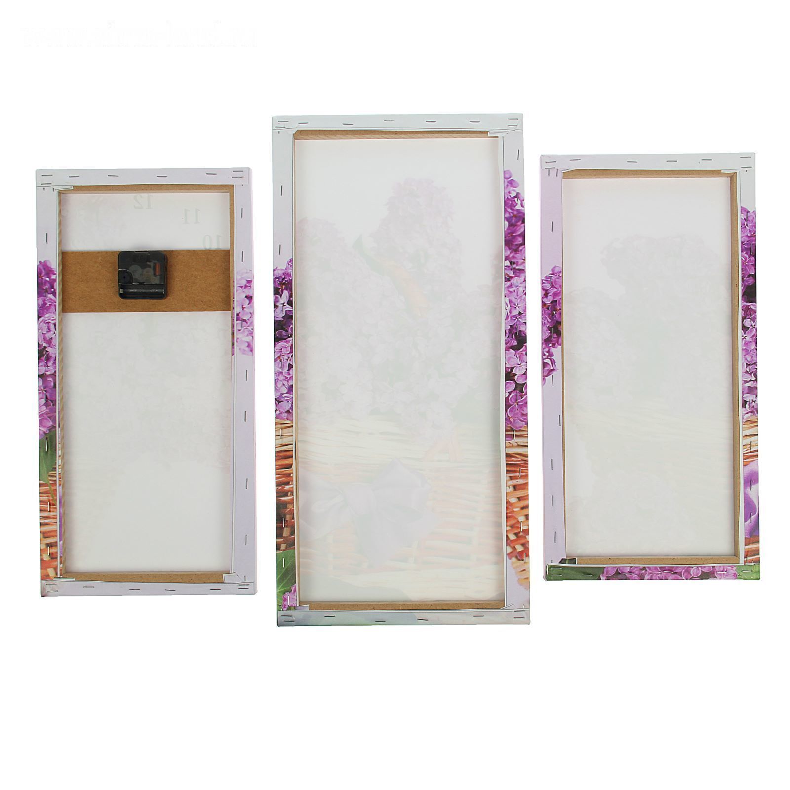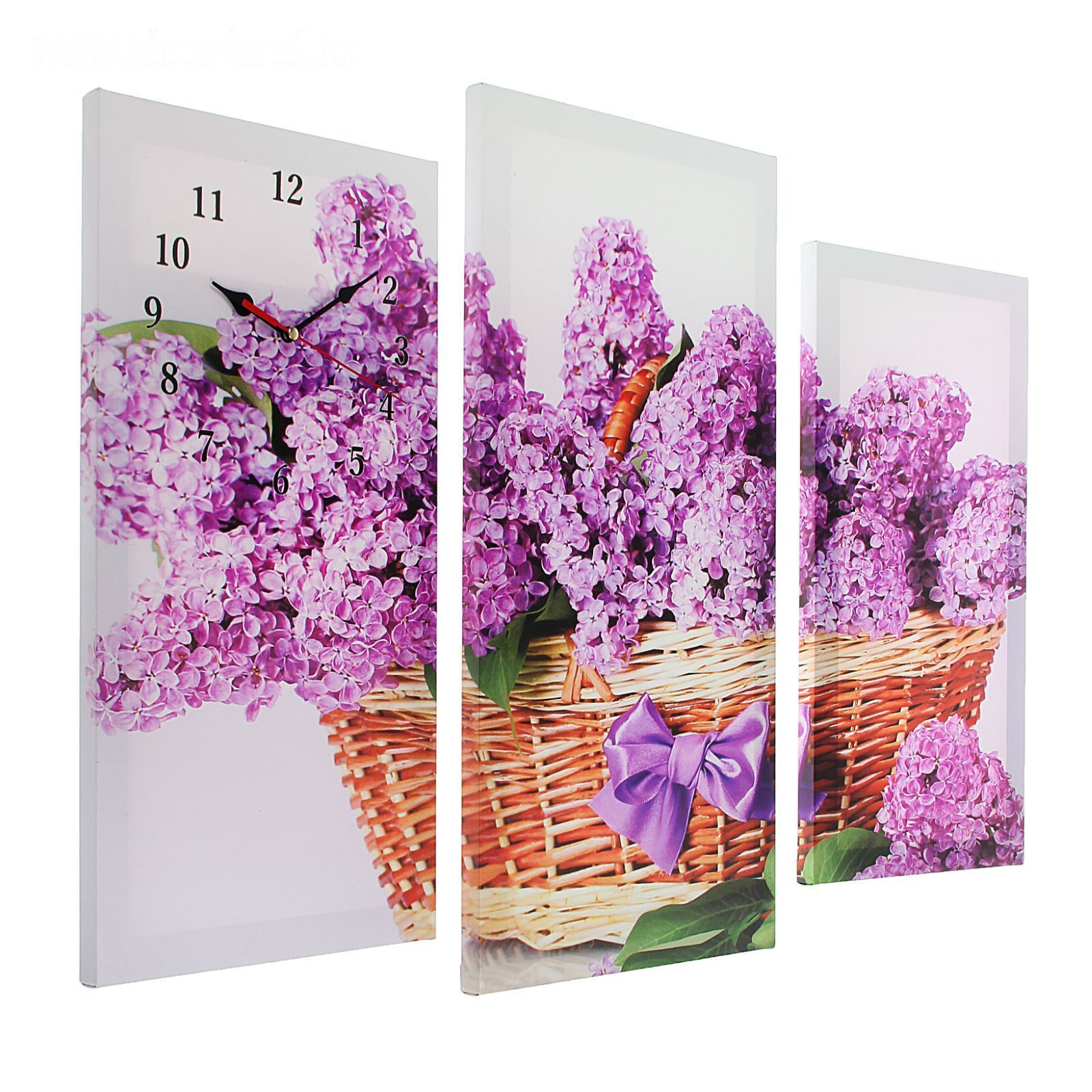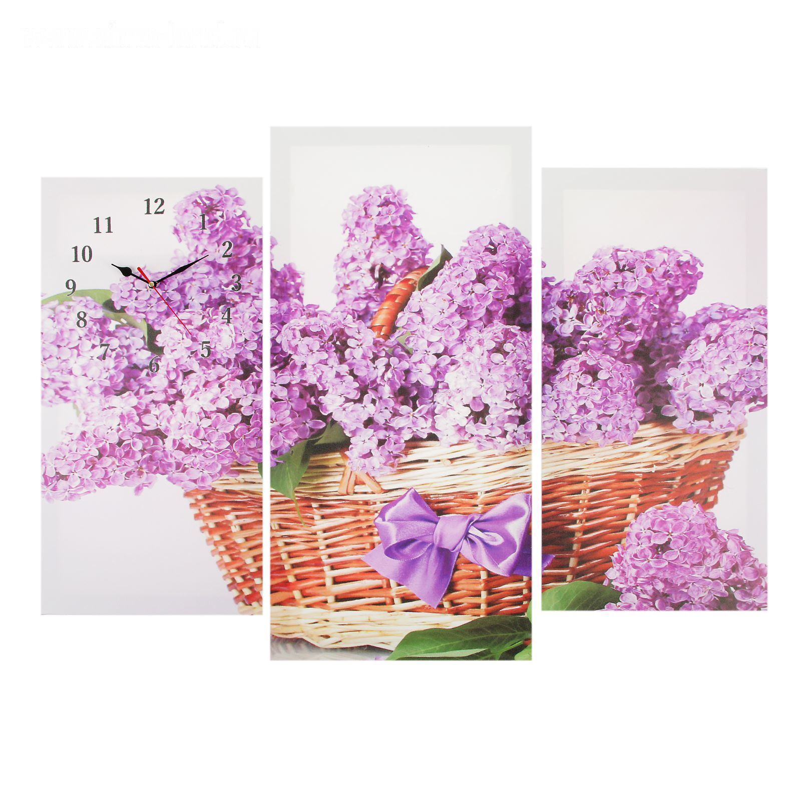 Часы настенные, модульные, серия: Цветы, "Корзина сирени", 60х80 см