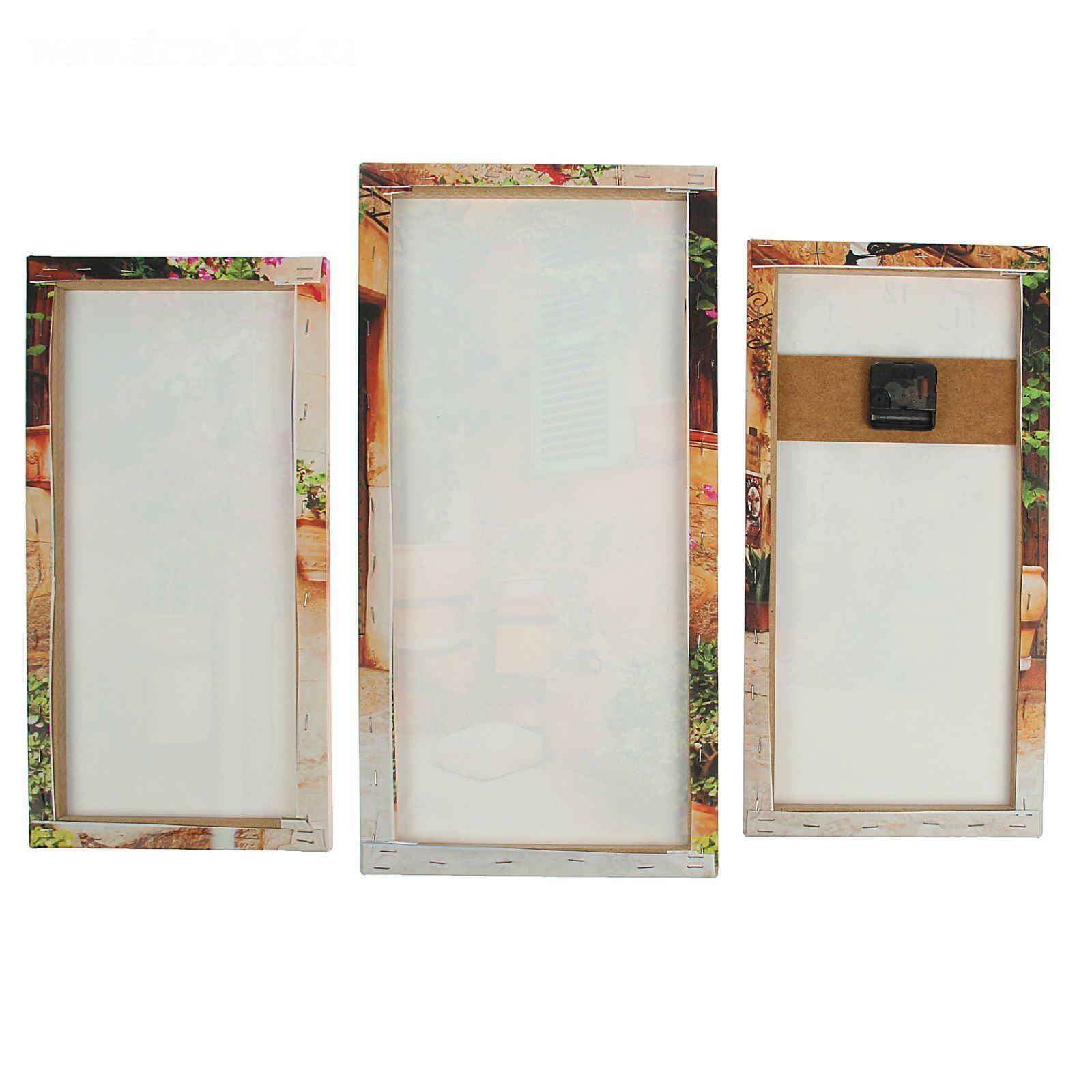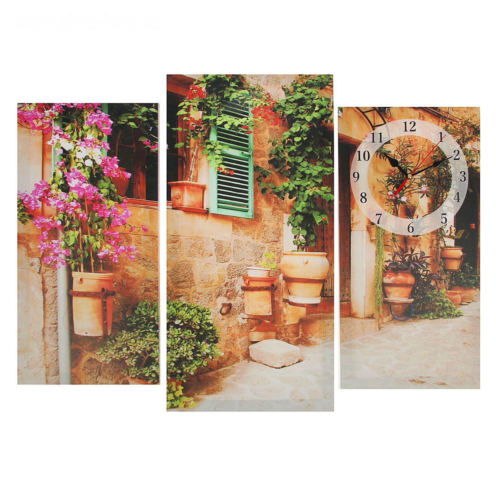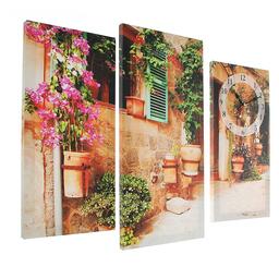Часы настенные, модульные, серия: Цветы, "Украшенный цветами дом", 60х80 см