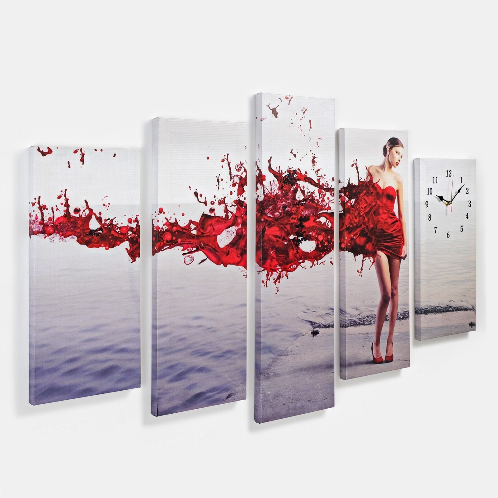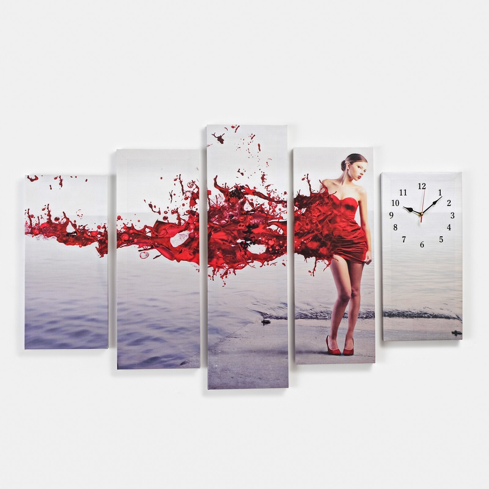 Часы настенные, модульные, серия: Люди "Девушка в красном", 80х140 см