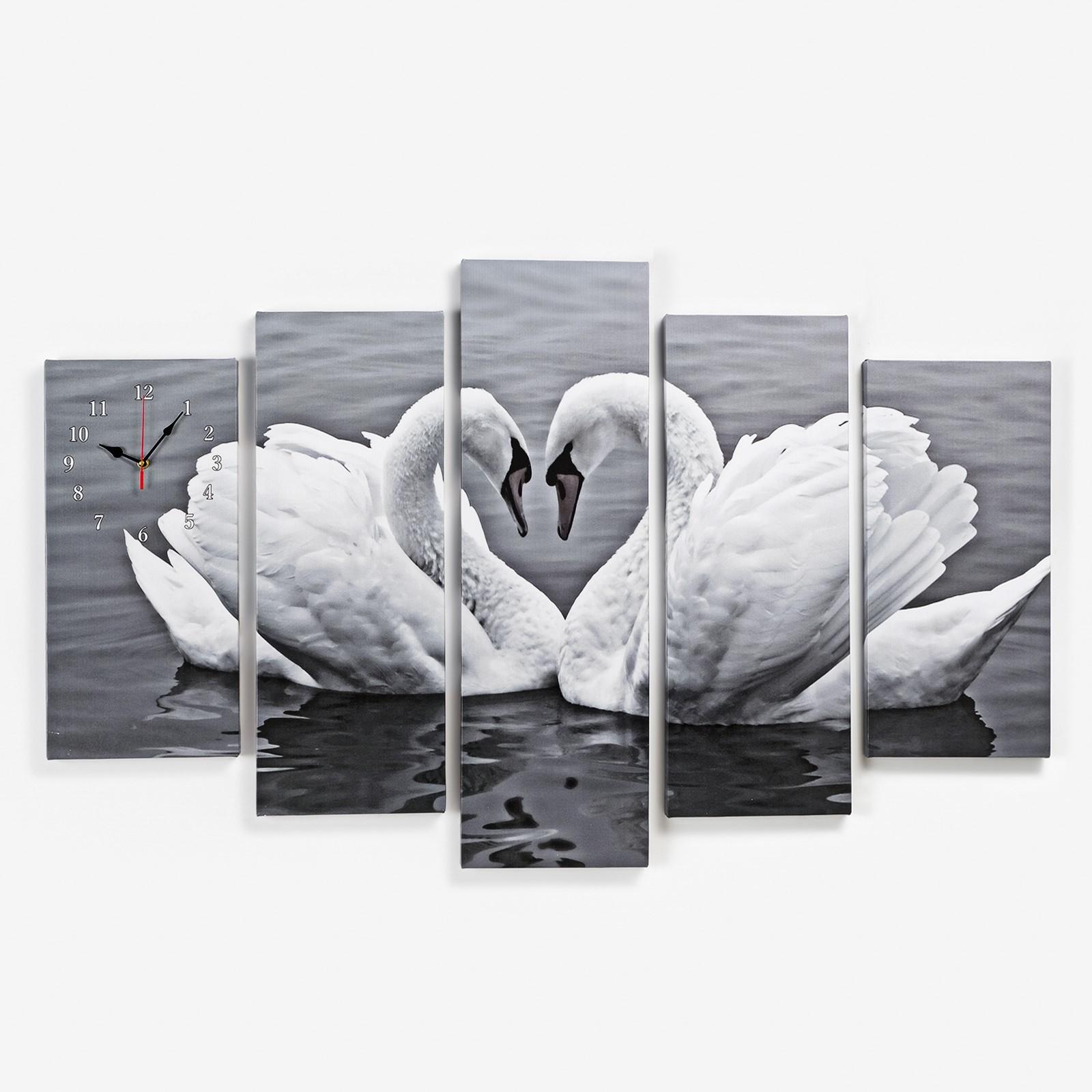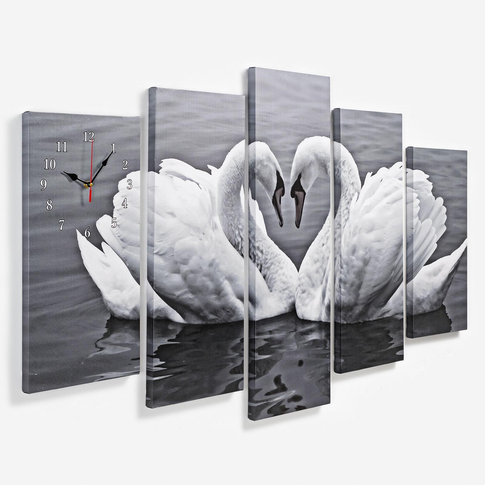 Часы настенные, модульные, серия: Животный мир, "Пара лебедей", 80х140 см