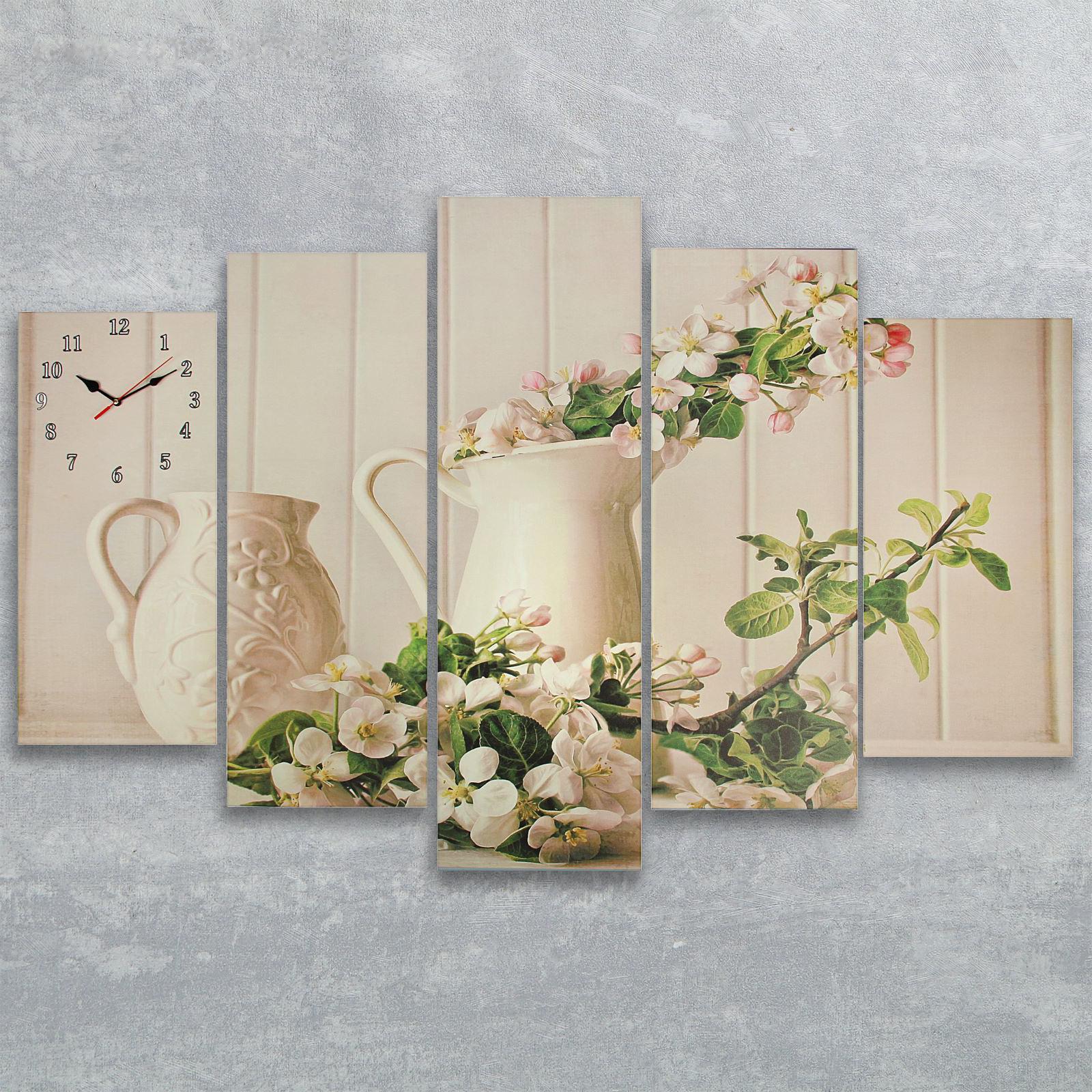 Часы настенные, модульные, серия: Цветы, "Ваза с цветами", 80х140 см