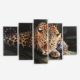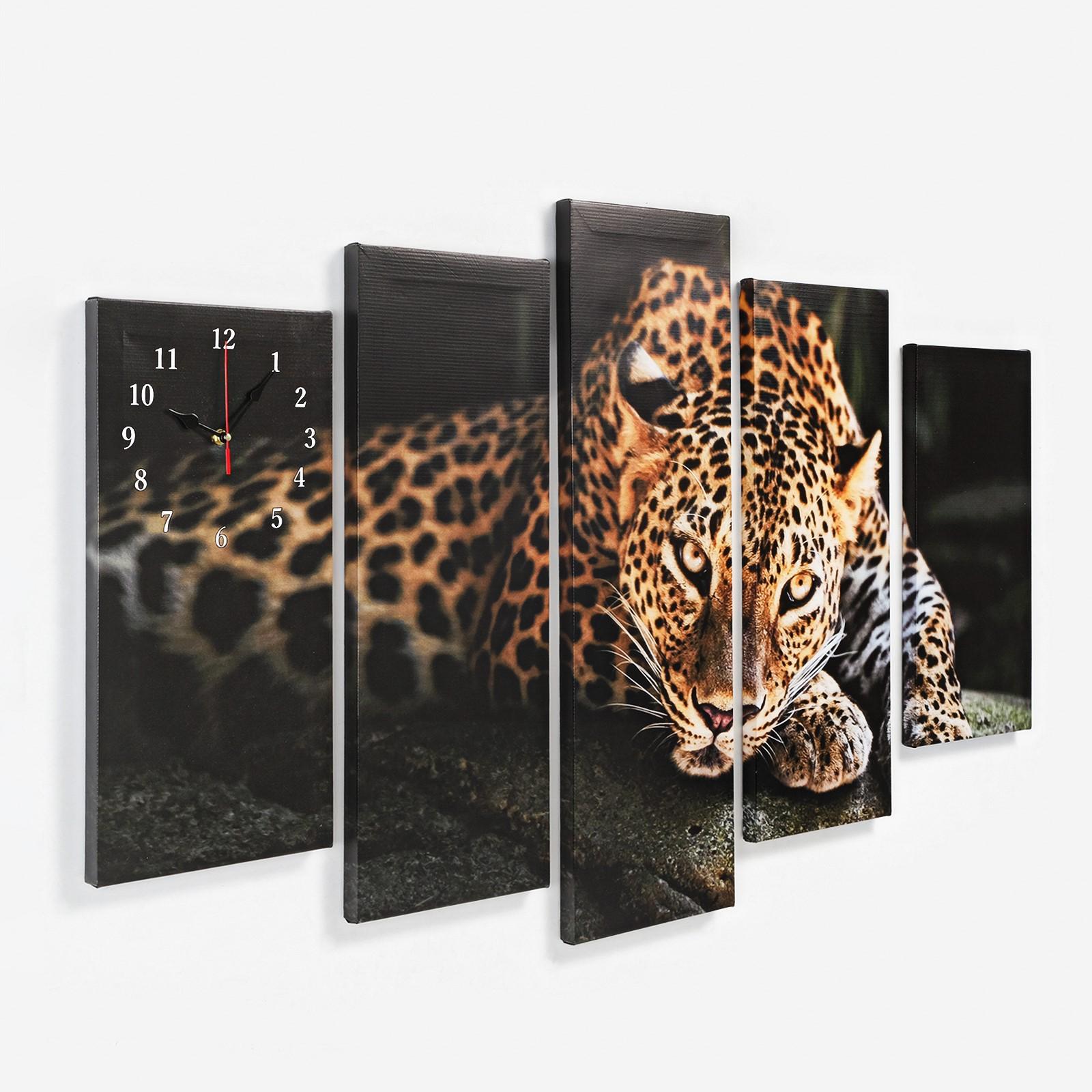 Часы настенные, модульные, серия: Животный мир, "Леопард", 80 × 140 см