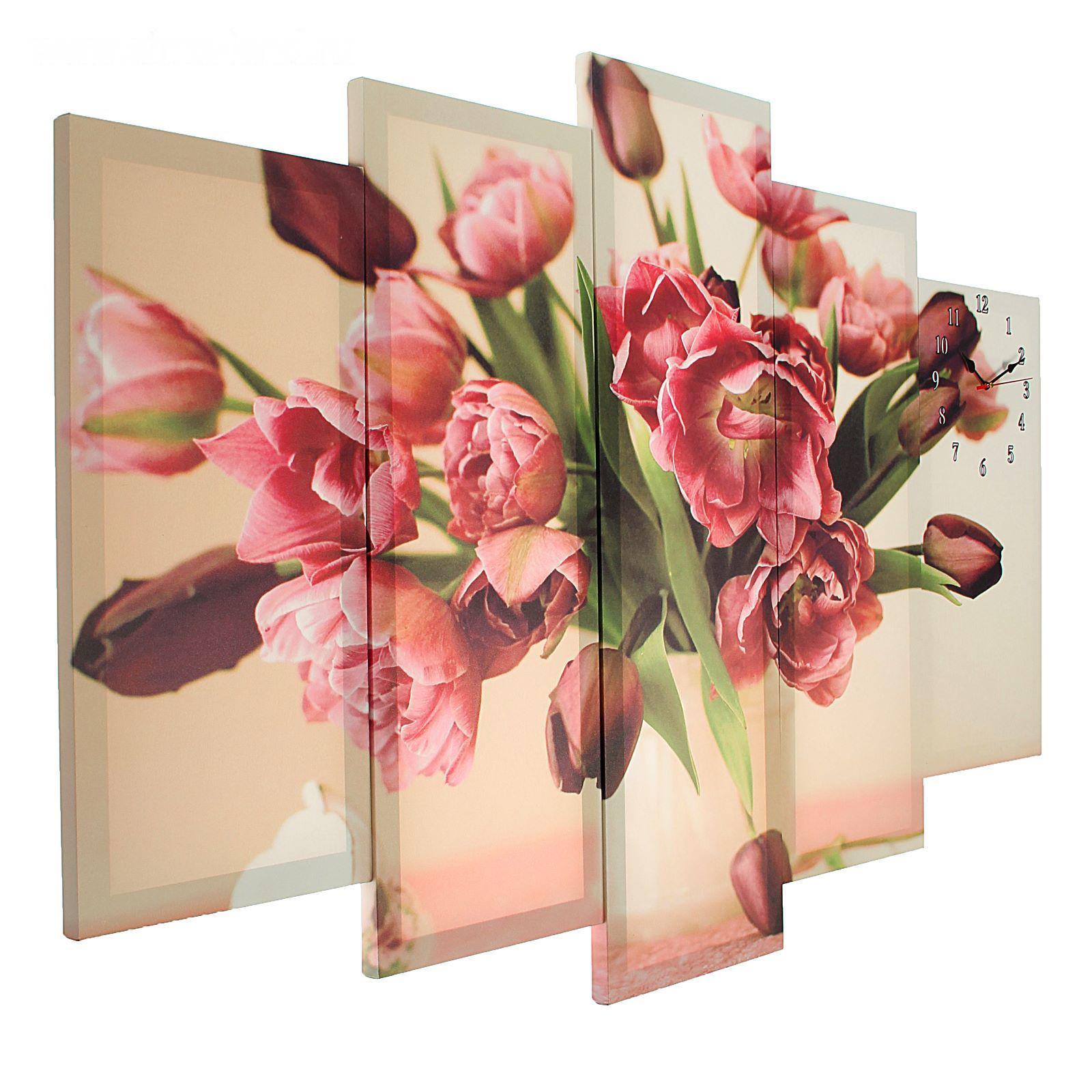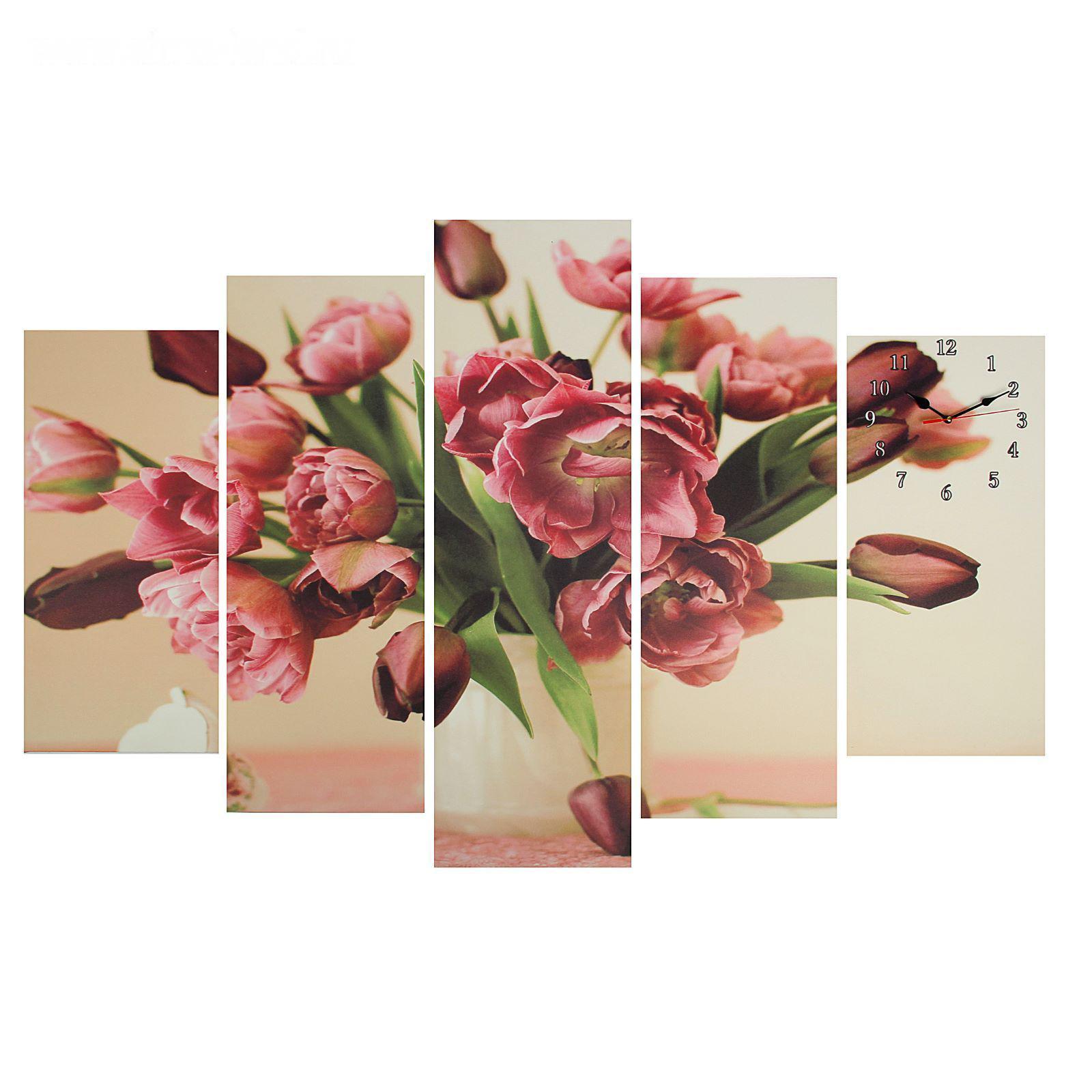 Часы настенные, модульные, серия: Цветы, "Бледно-красные тюльпаны", 80х140 см