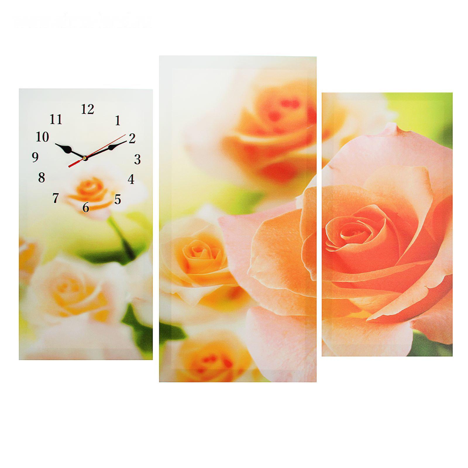 Часы настенные, модульные, серия: Цветы, "Розовые розы", 60х80см