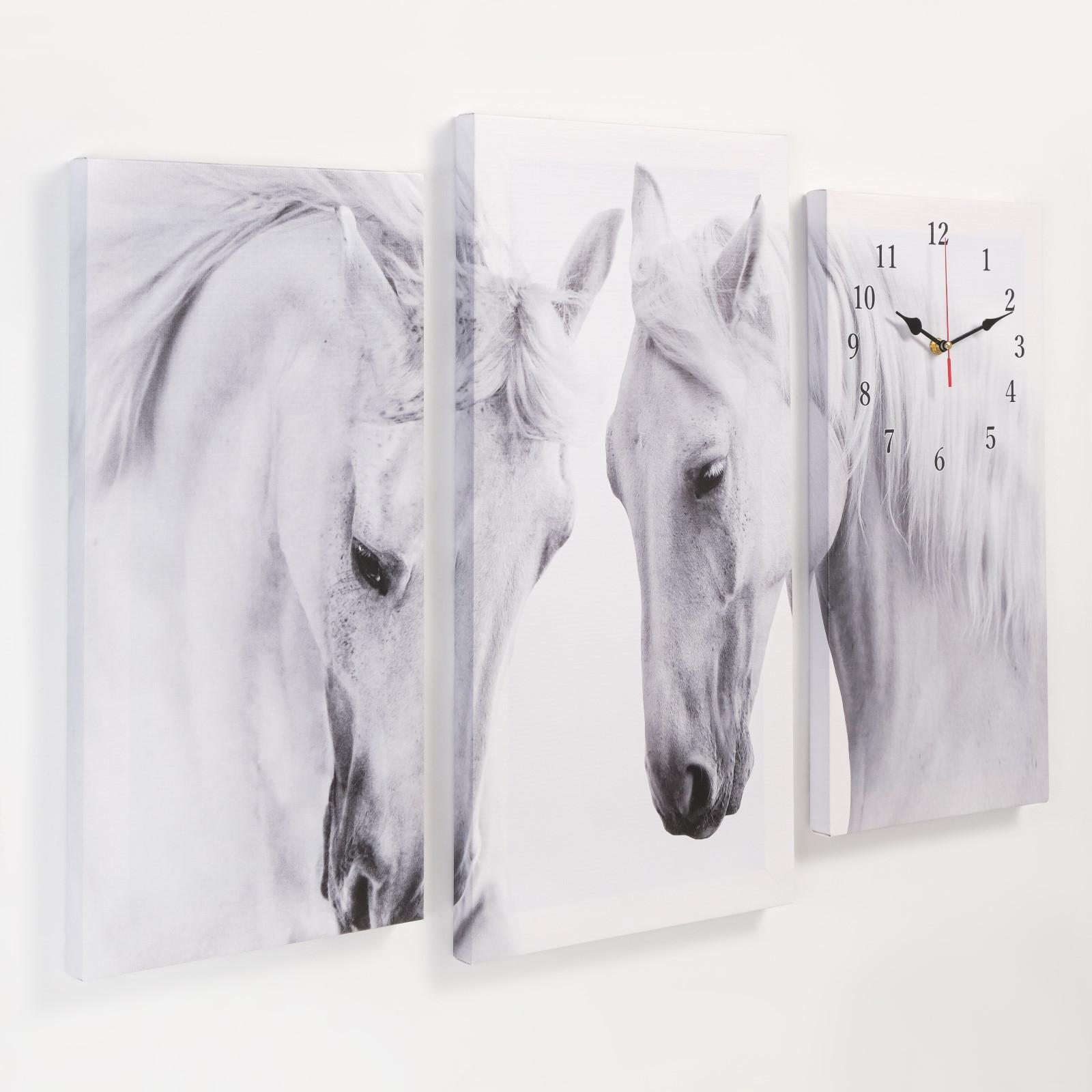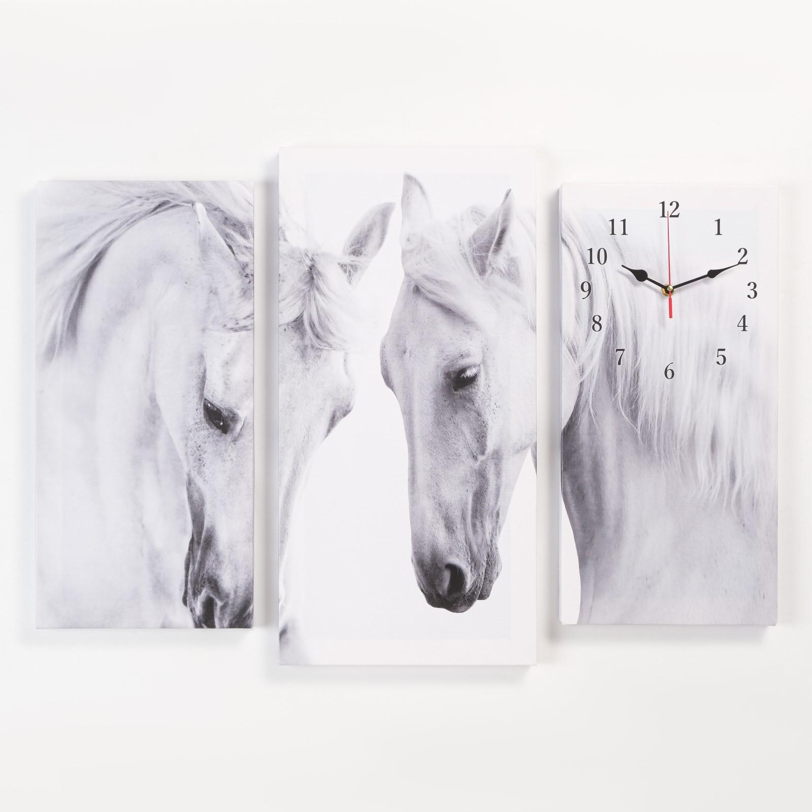 Часы настенные модульные, серия: Животные, "Лошади", 60 х 80 см