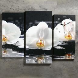 Часы настенные модульные «Белые орхидеи на камнях», 60 × 80 см