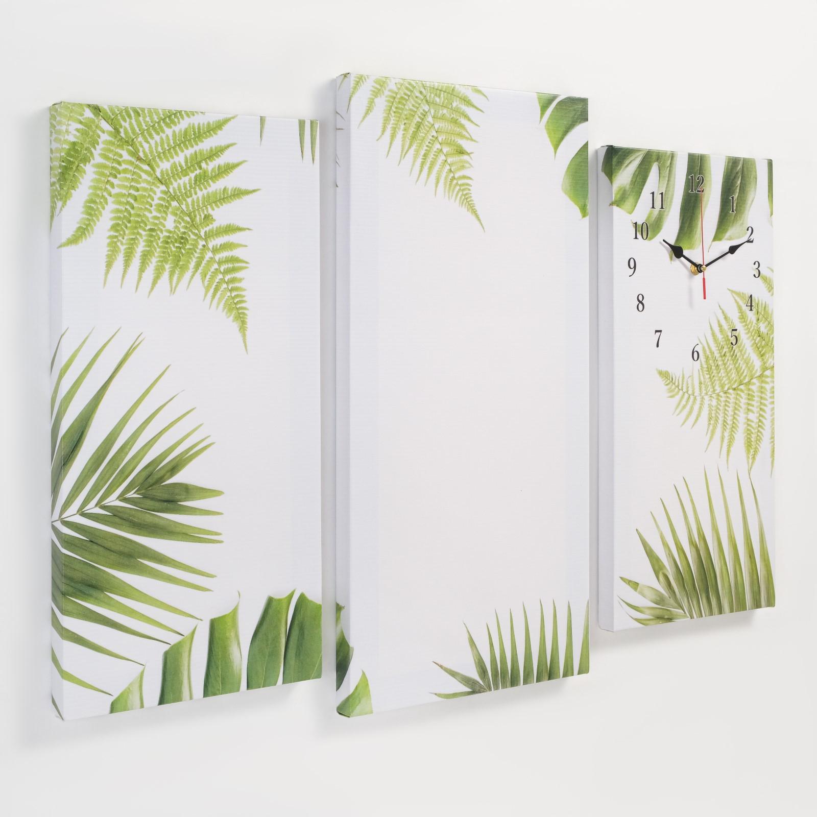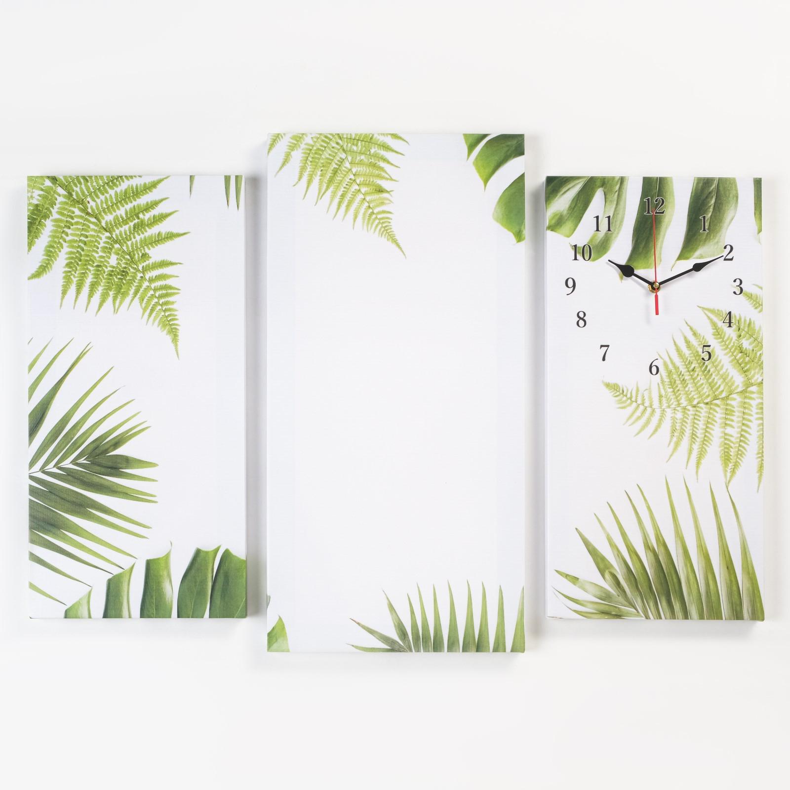 Часы настенные модульные, серия: Цветы, "Листья", 60 х 80 см