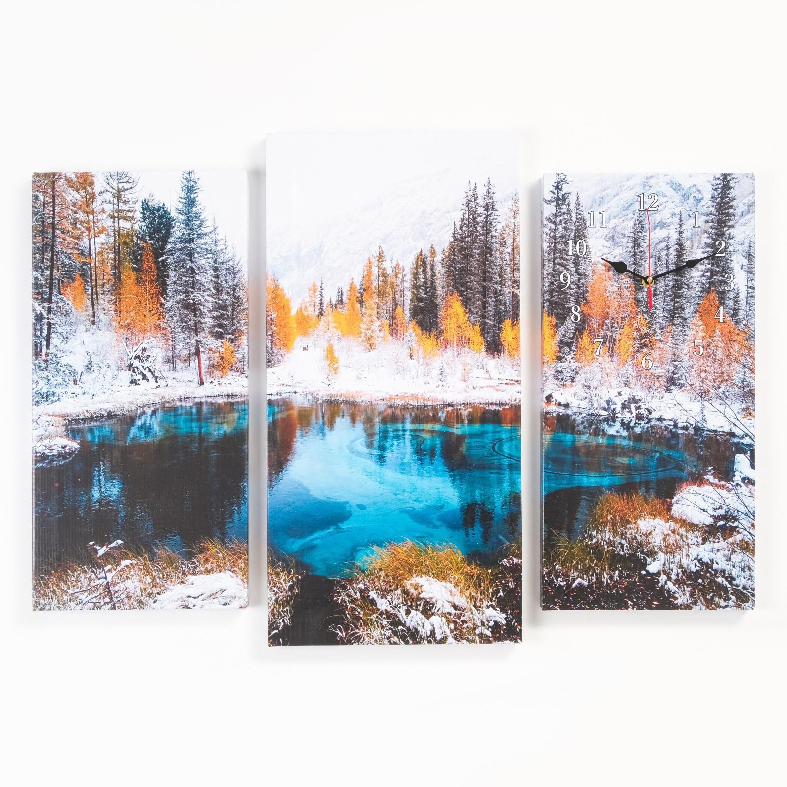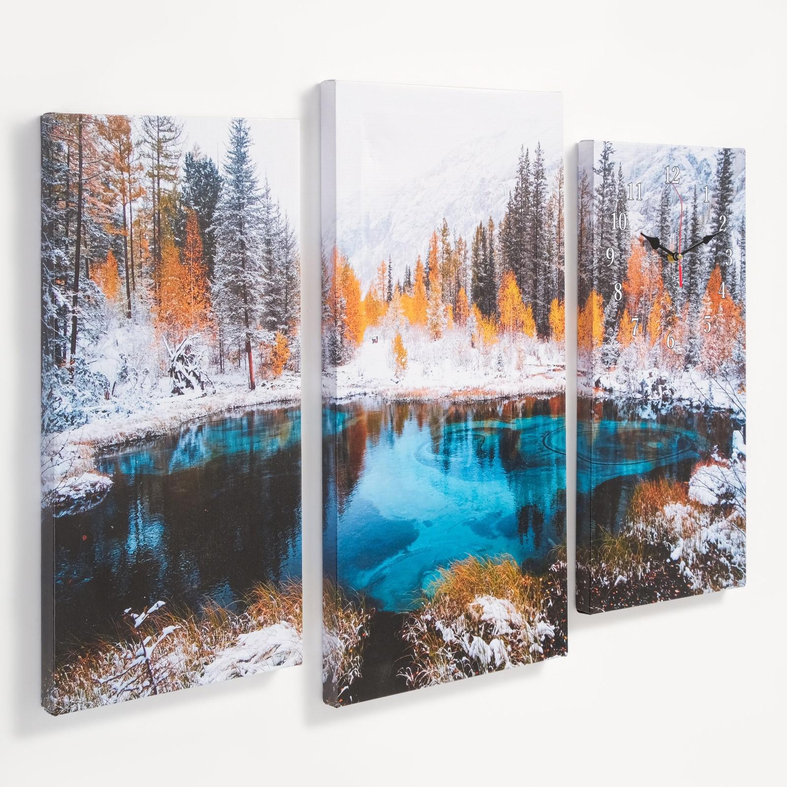 Часы настенные модульные, серия: Природа, "Зимнее озеро", 60 х 80 см