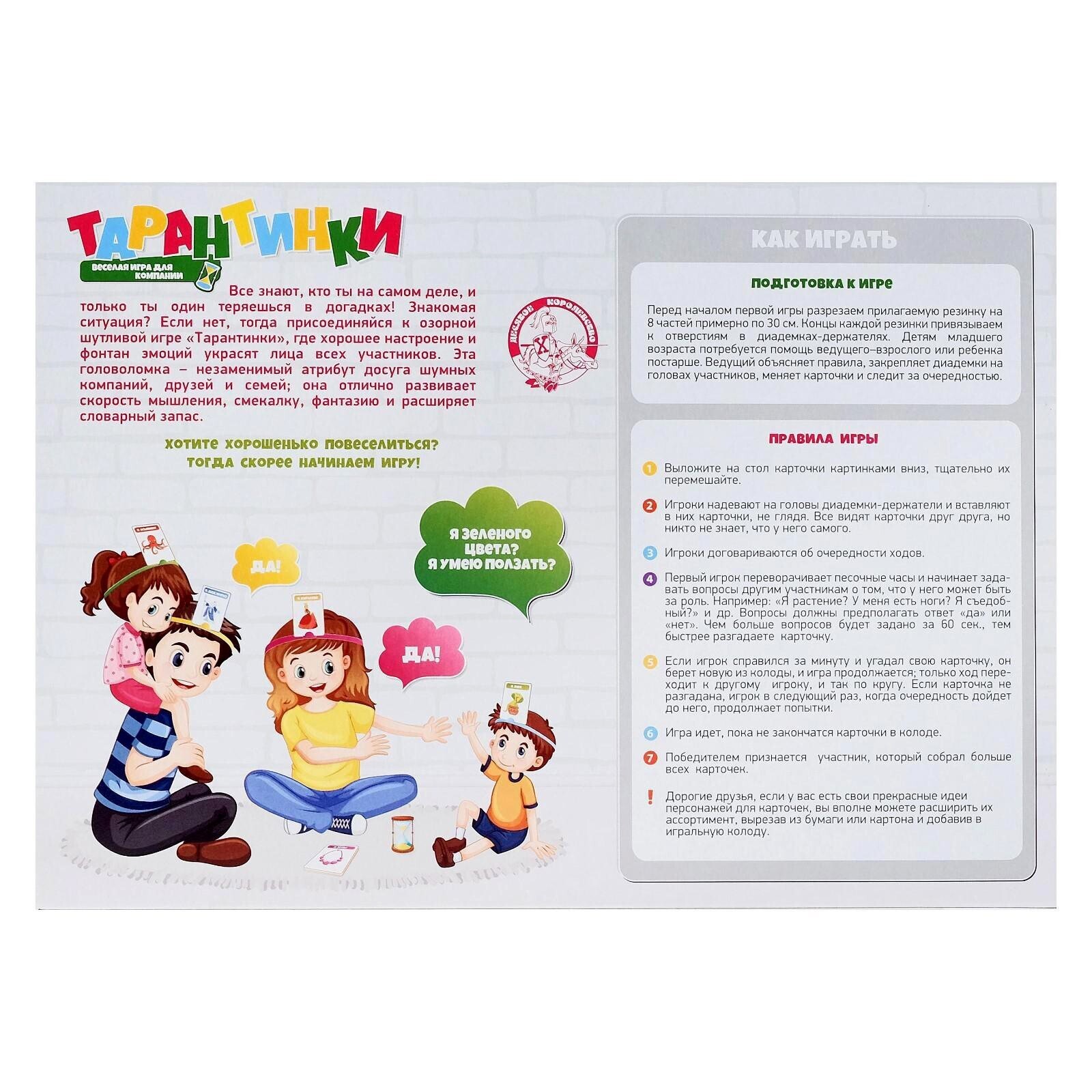 В «Тарантинки» можно играть как вдвоем, так и большой компанией – однако, детям младшего возраста понадобится помощь ведущего. Игра тренирует аналитические способности и дедукцию.